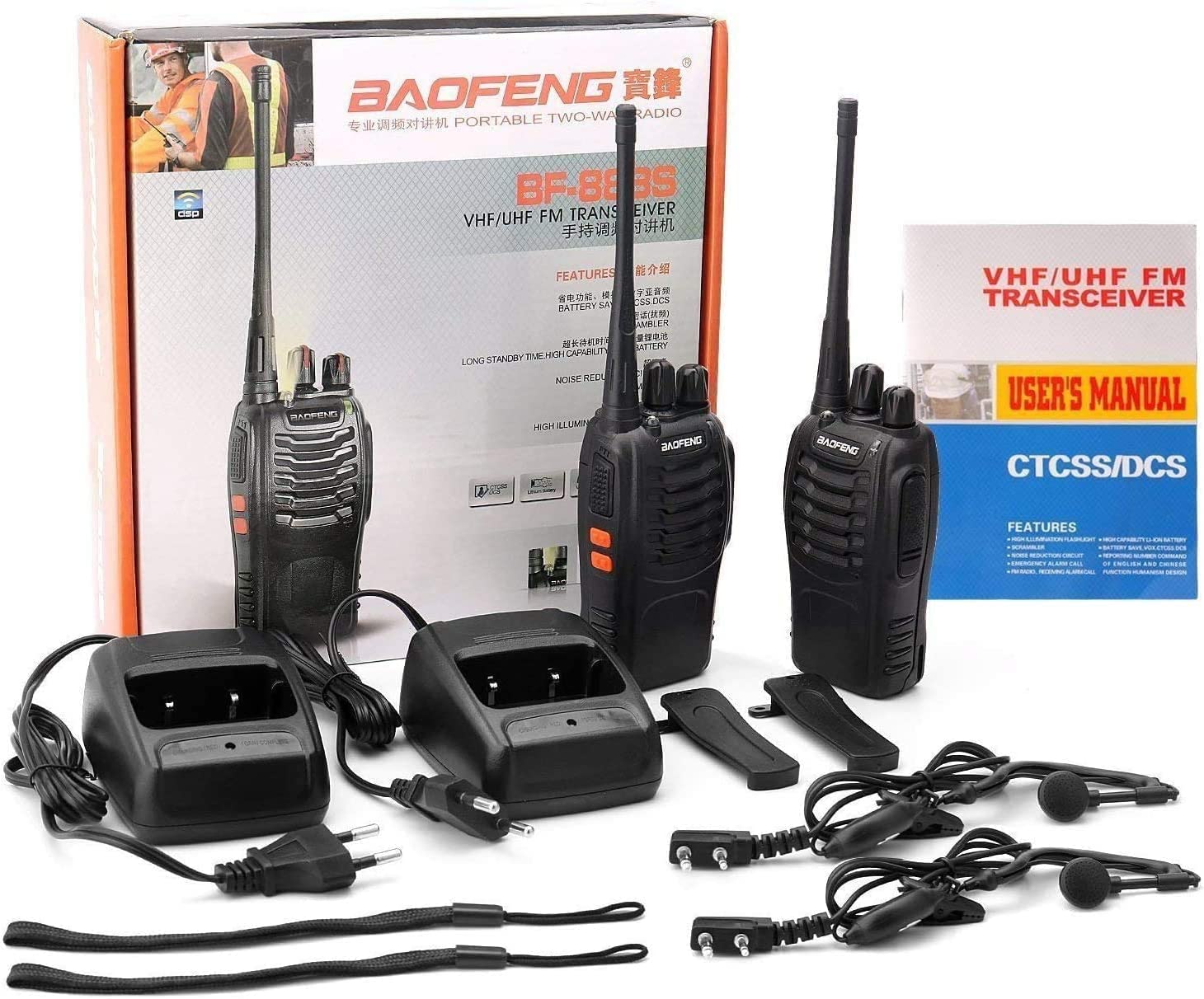 2 Walkies Talkies 16 canais, bateria, rádio com auricular