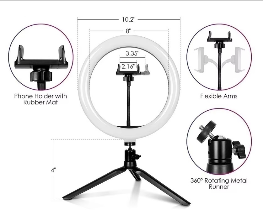 Home Fotografia/Vídeo Anel de luz RGB 25cm ringlight com suporte e comando bluetooth Anel de luz RGB 25cm ringlight com suporte e comando bluetooth 22,95 € Desconto de %. IVA incluído. Comprar Contactar Adicionar à wishlist Anel de luz LED RGB, 10 Base para mesa Fácil de montar e transportar.Alimentação: USB 5V Diâmetro: 25cm (10")Gira 360ºConexão por comando Bluetooth Conteúdo da embalagem:1 × anel de luz LED RGB1 × comando Bluetooth1 × suporte para smartphone Dimensões do pacote: 28x28x5cm 0,7 kg Partilhar