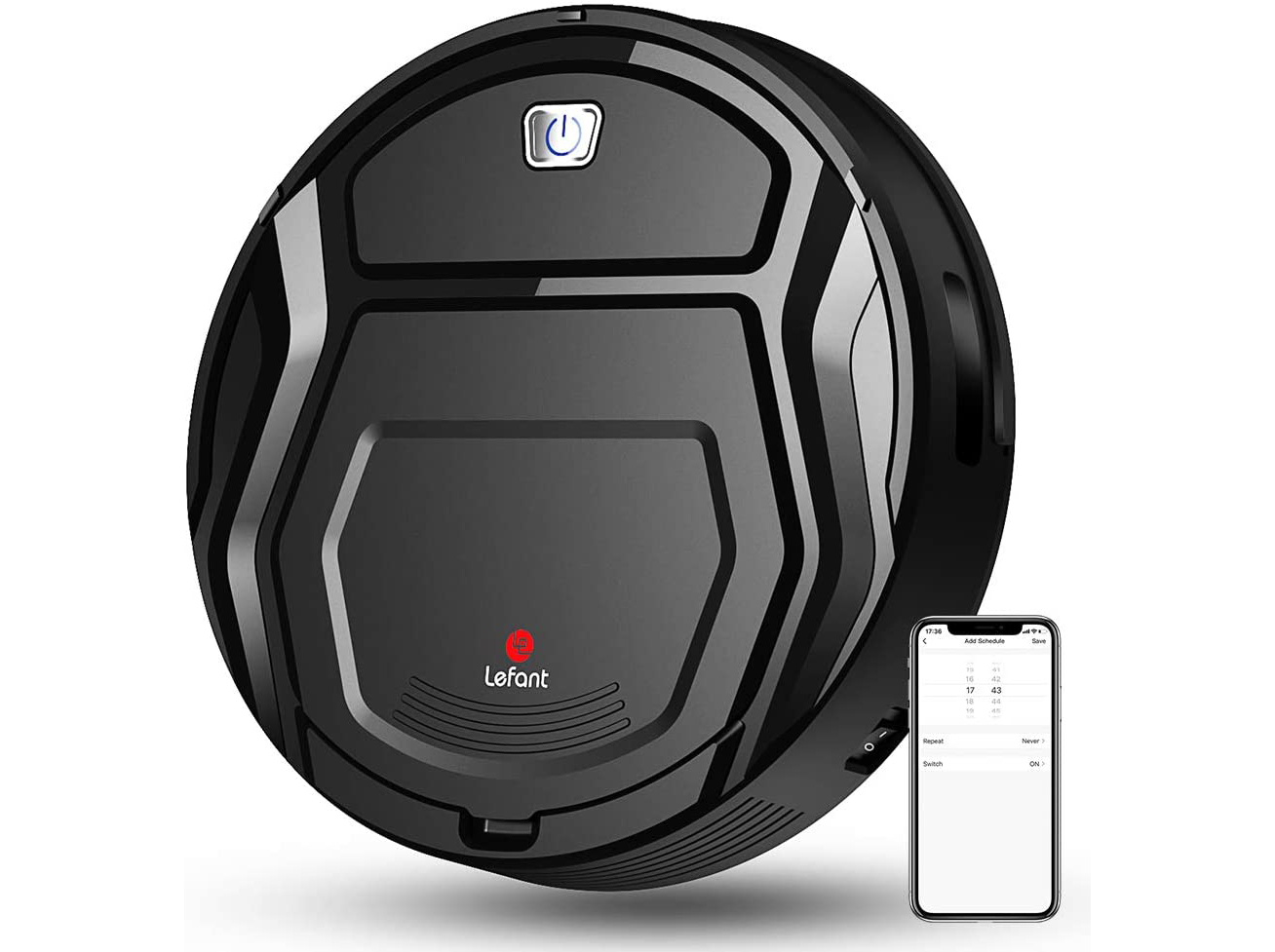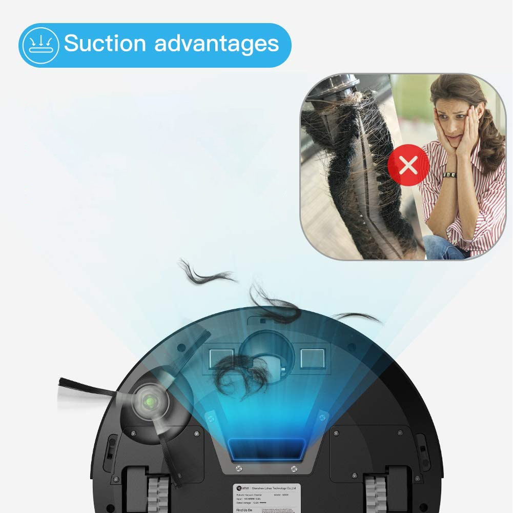 LEFANT 1800Pa Capacidade de tanque: 500 ml Robot Vacuum Cleaner, Tecnologia Enhanced 6D Collision Sensor Ideal para pêlos de animais, carpetes e pisos duros, WiFi / Alexa / App, Preto, M201