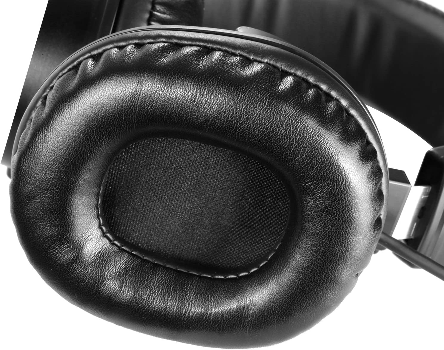 Fones com espuma de memória super macia e couro, e oferece o melhor efeito de isolamento de ruídos externos. Braço de aço inoxidável leve e fácil de ajustar o comprimento. Tem uma estrutura de cavidade fechada precisa e pode produzir um som excelente. Fornece a pressão adequada aos ouvidos e não se deforma. Adota o driver NdFeB de 45 mm mais atualizado e uma faixa dinâmica mais ampla. Com bobine grande, que garante uma saída segura e estável mesmo quando atinge alta potência instantânea. O adaptador rosqueado durável mantém uma boa conexão durante a operação. O cabo OFC é simples de usar, fornece bons sinais e baixo ruído.