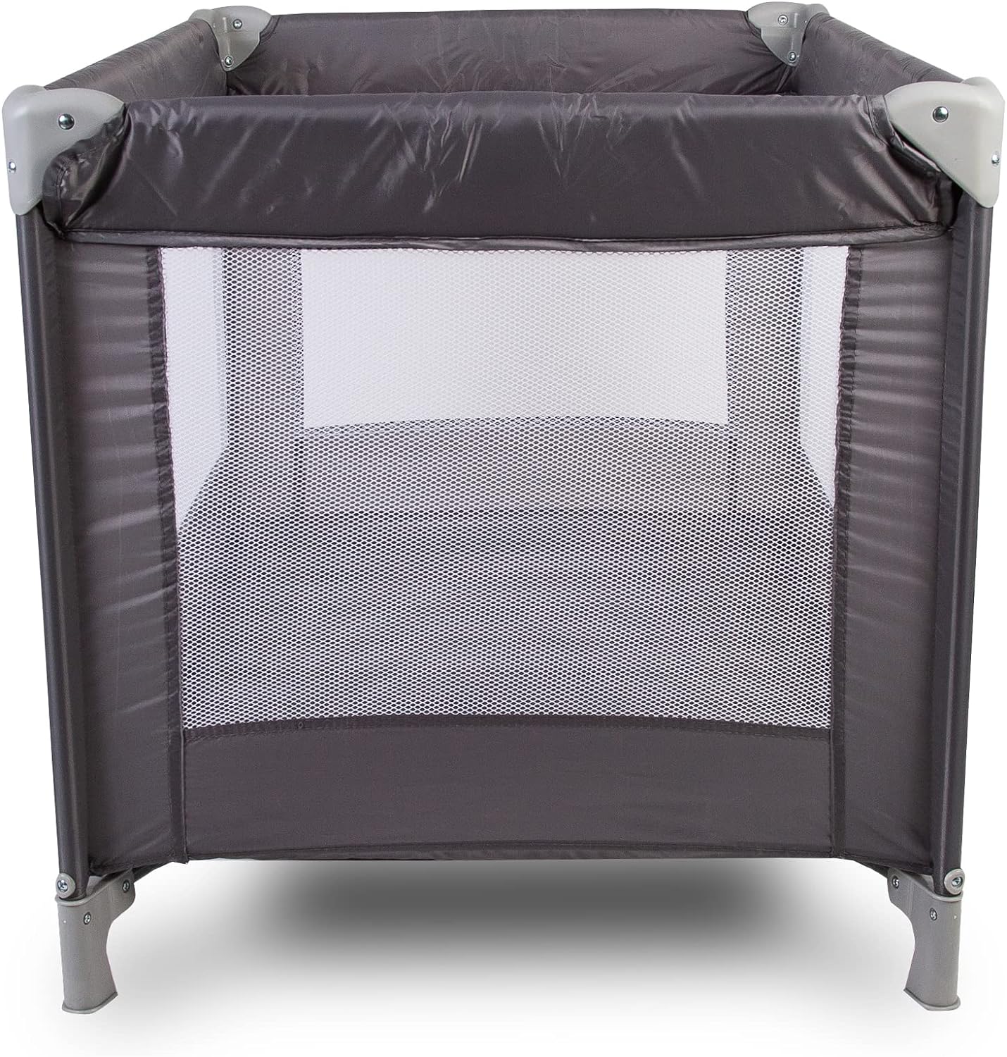 O berço é fácil de dobrar e guardar com grades superiores acolchoadas para garantir que seu filho esteja protegido de quaisquer materiais pontiagudos ou duros, e laterais de malha de fácil visualização que oferecem uma maneira simples de verificar seu filho.