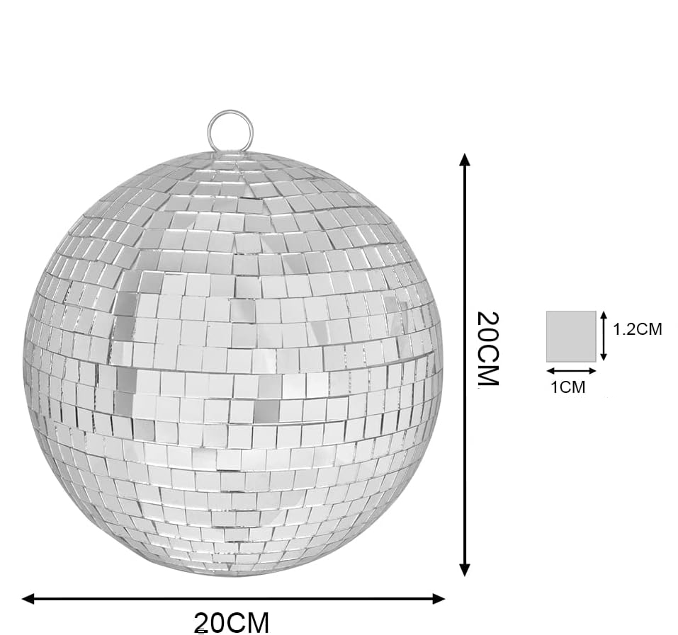 A superfície da bola de espelhos é coberta com pequenos espelhos de 1.2cm de largura.