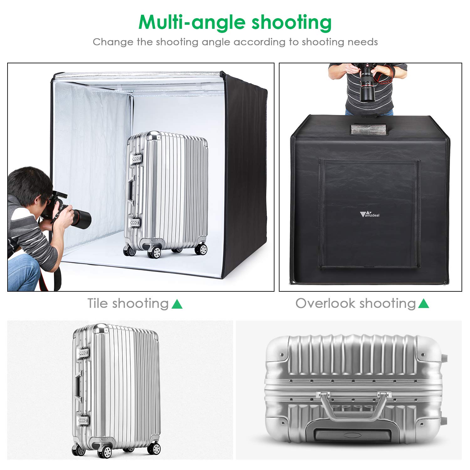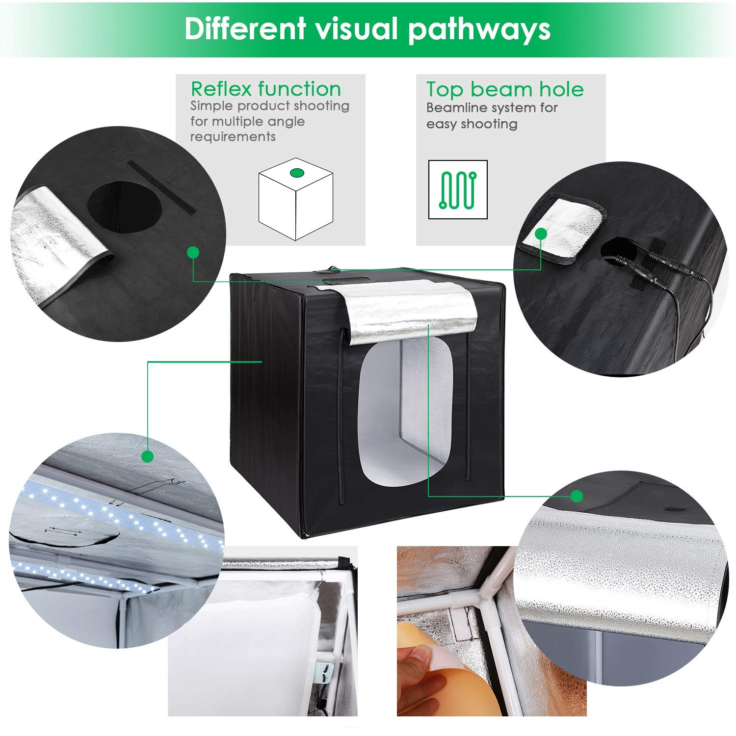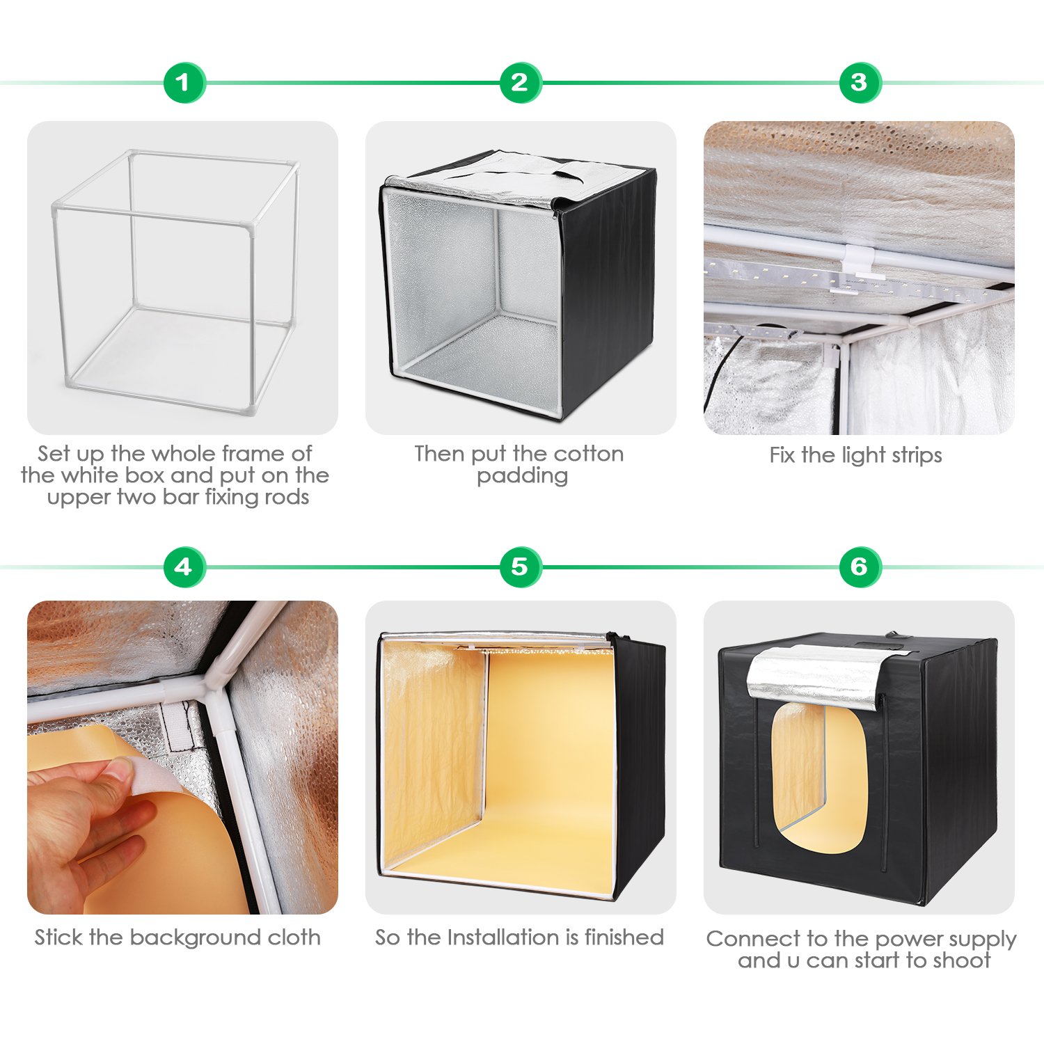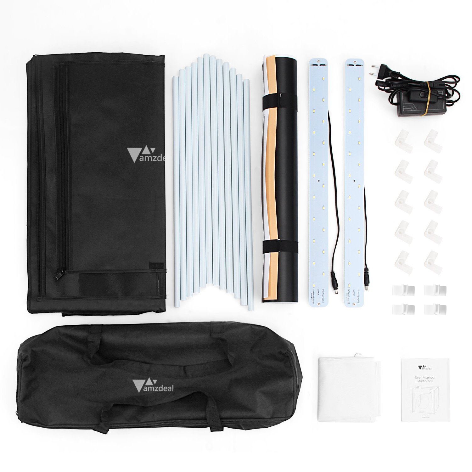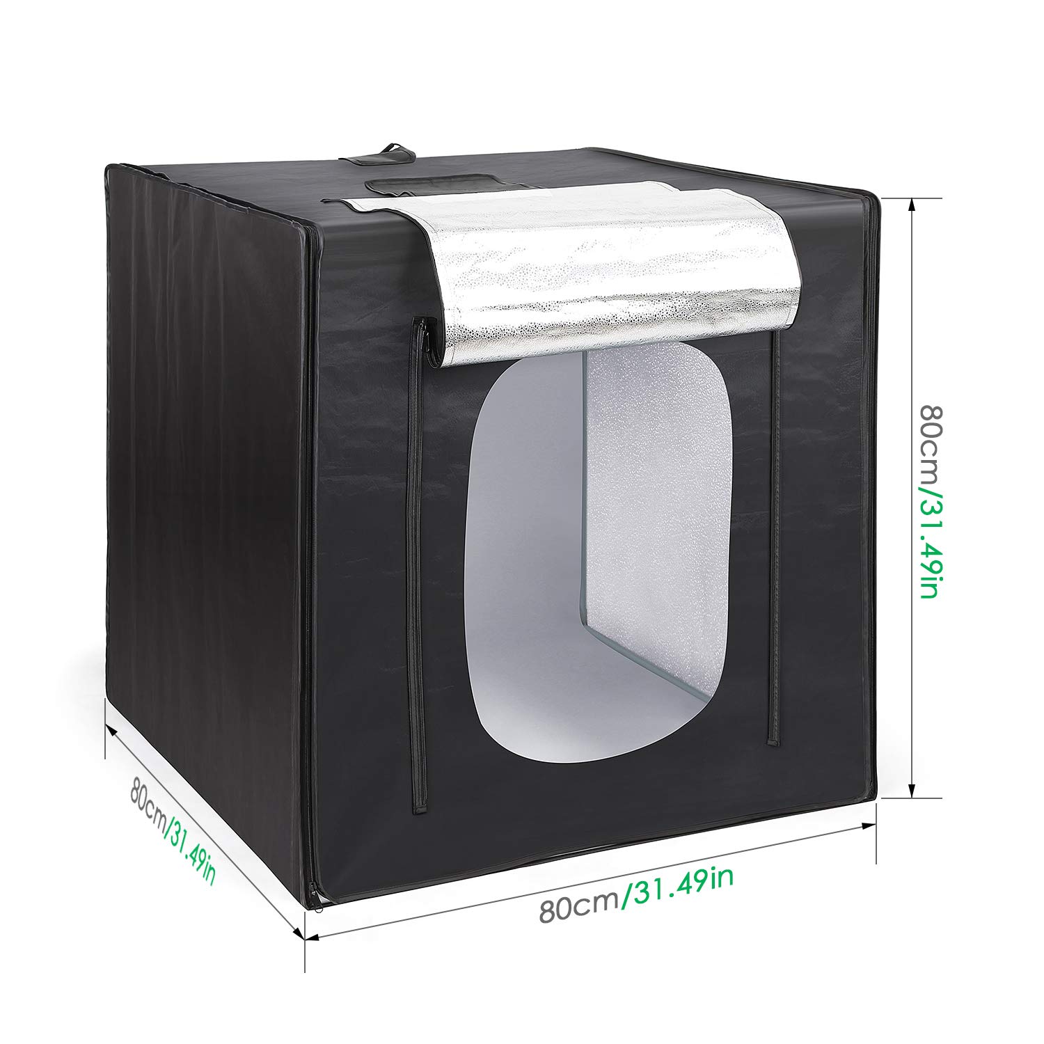 Box para fotografia de produto 80x80x80cm equipado com 2 tiras led que proporcionam uma intensidade entre até 85w