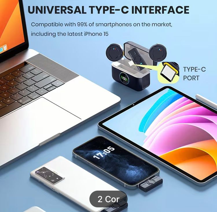 Microfone sem fios lapela para Type-C iPhone iPad Android