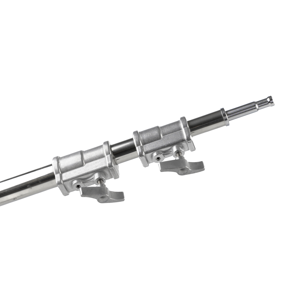 Utilize o braço articulado com o tripé Caruba C-Stand para fixar facilmente acessórios com a conexão Mount op 5/8" baby-studs en stand top-studs. O braço articulado tem 128 cm de comprimento, permitindo posicionar objetos em diferentes alturas, por exemplo, próximo ao chão ou em grandes alturas.