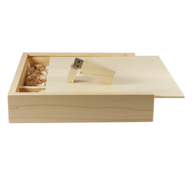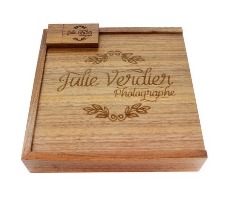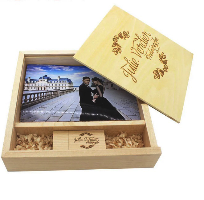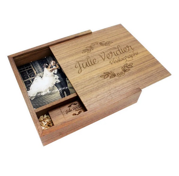 Caixa de madeira para fotografia + pen drive gravação logotipo personalizável