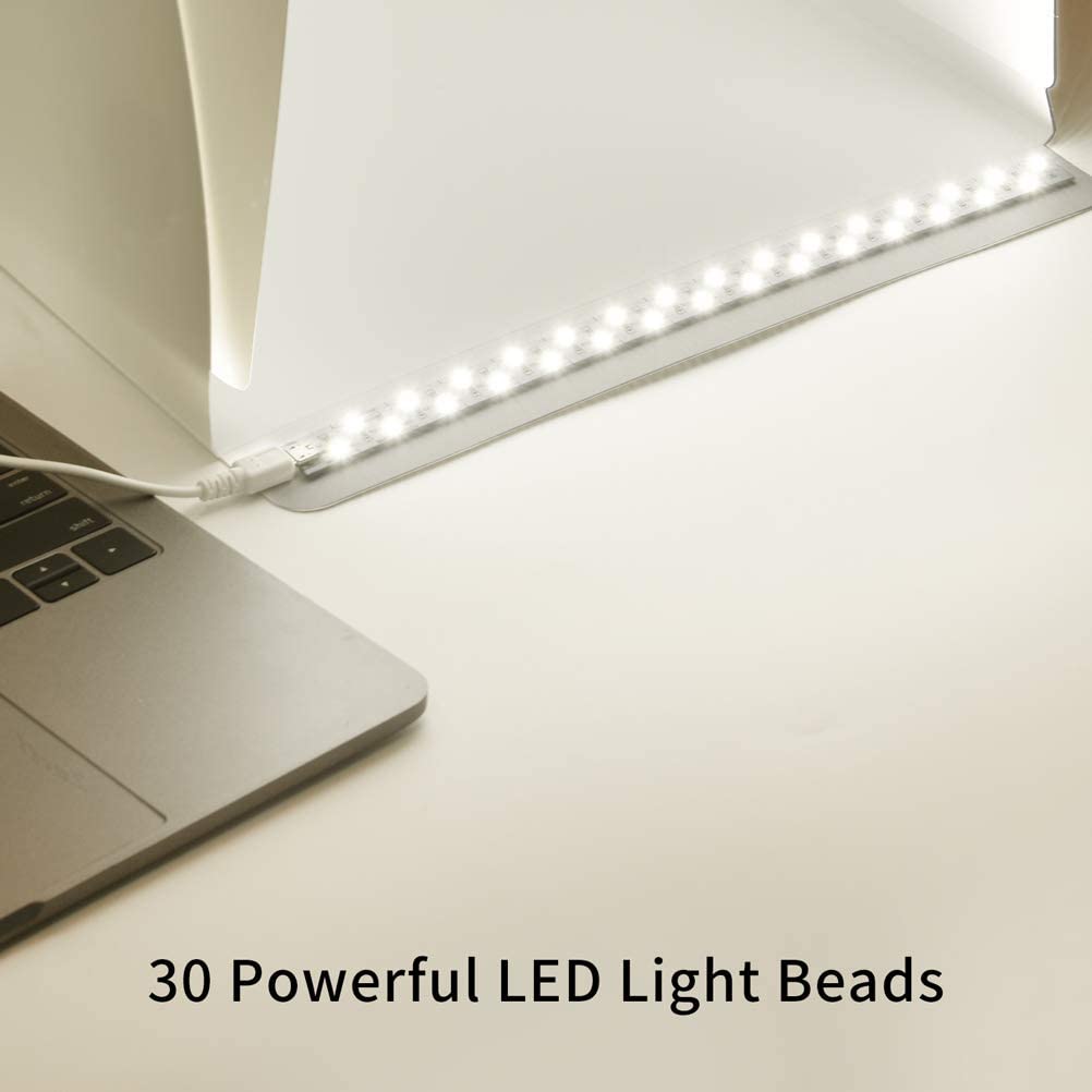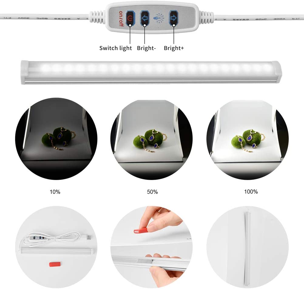 As faixas LED podem ser colocadas em qualquer lugar dentro da caixa para reduzir sombras e ajustar o ângulo livremente.