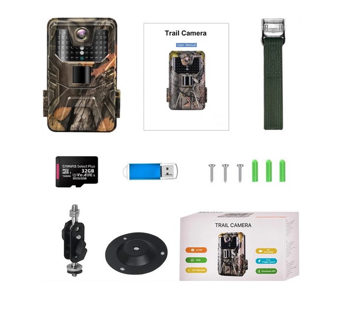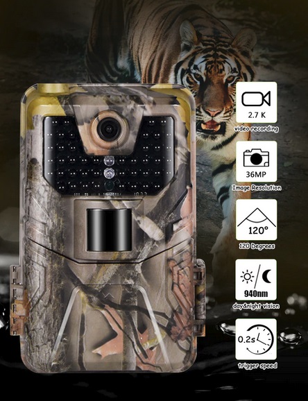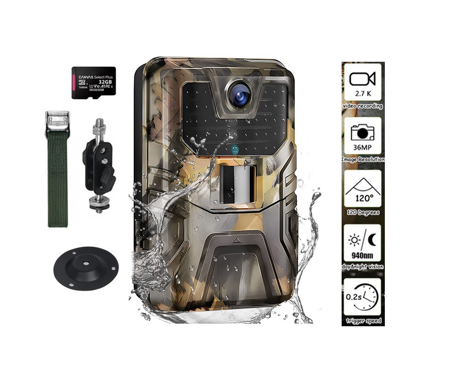 Câmara caça 36Mp 2.7K + cartão e acessórios com visão noturna