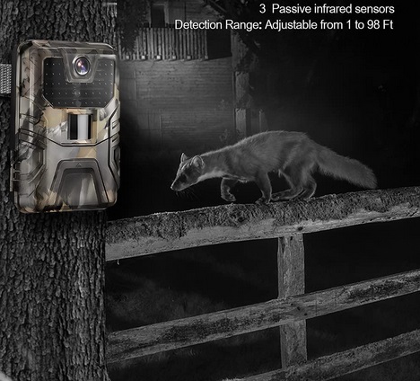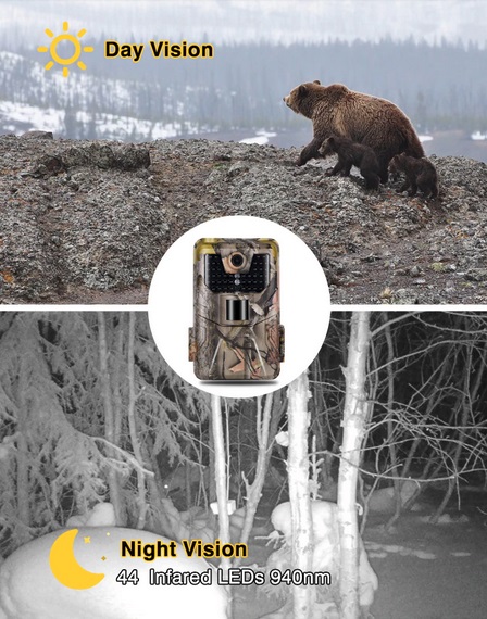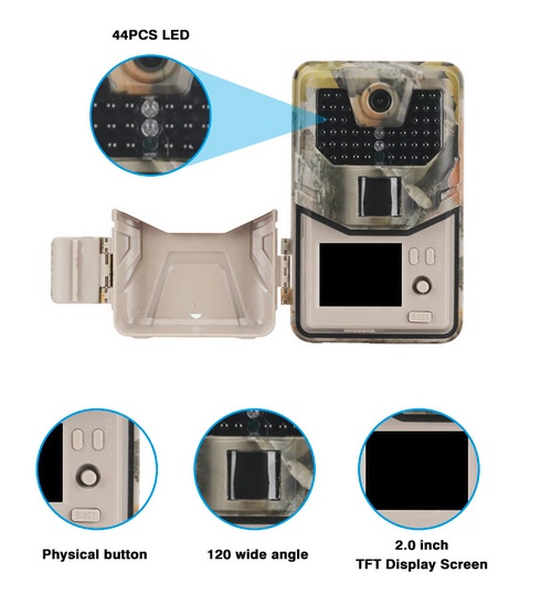 Ideal para caça ao ar livre, segurança doméstica, segurança agrícola, vigia de vida selvagem e reconhecimento. Ecrã embutido de 2.4" e menu interativo.