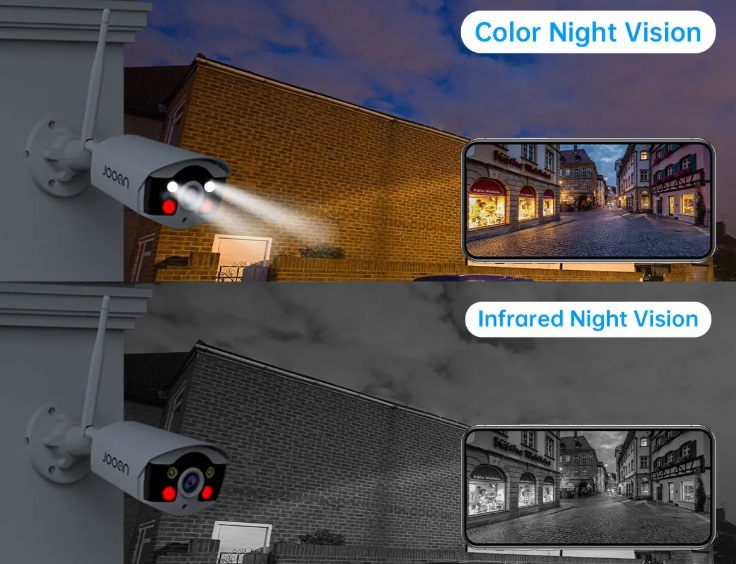quando a câmera detecta movimentos humanóides, o sistema enviará um alarme (mostrar mensagem para o APP, enviar e-mail, campainha do sistema), reduzir alarmes falsos e melhorar a precisão da detecção. Você pode saber que alguém está se aproximando de sua casa a qualquer hora e em qualquer lugar. Visão noturna colorida inteligente