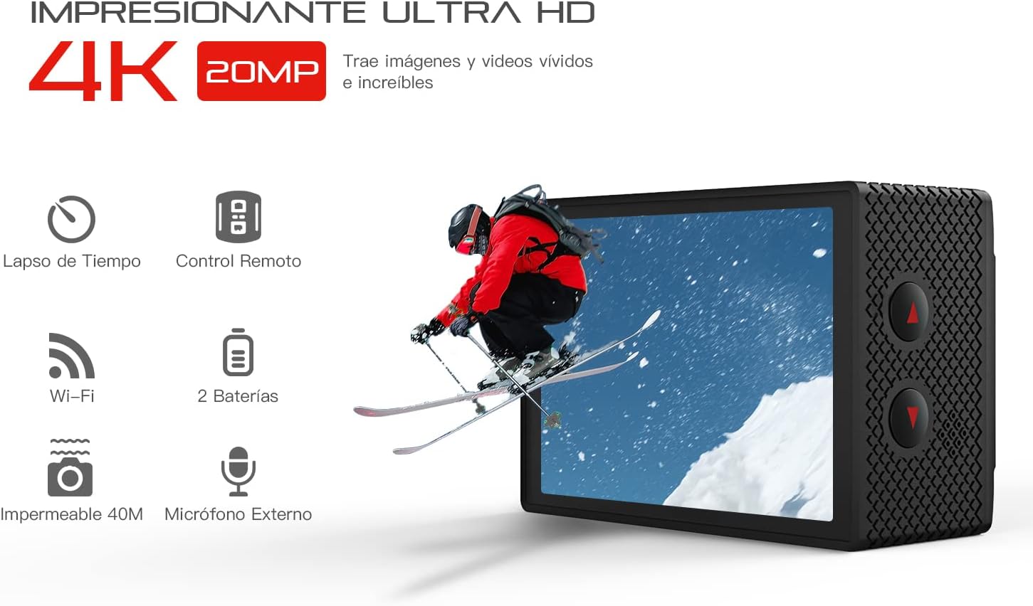Microfone externo: a câmara de ação conta com um microfone externo que é muito útil em lugares onde há muito ruído ou quando for inconveniente captar o som, como durante esqui, ciclismo, etc.