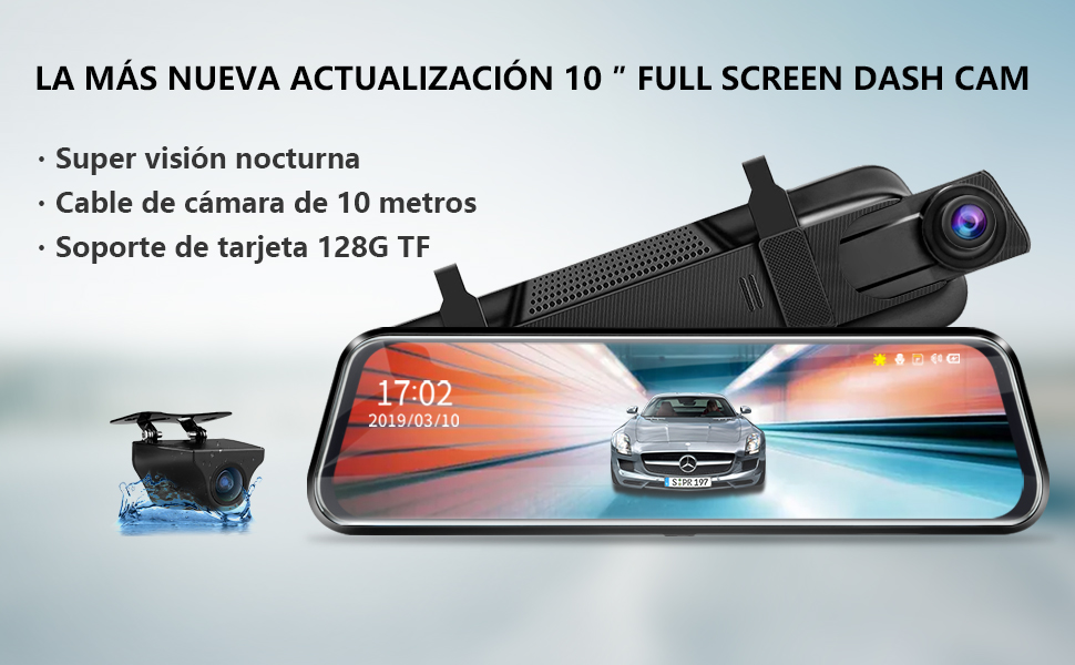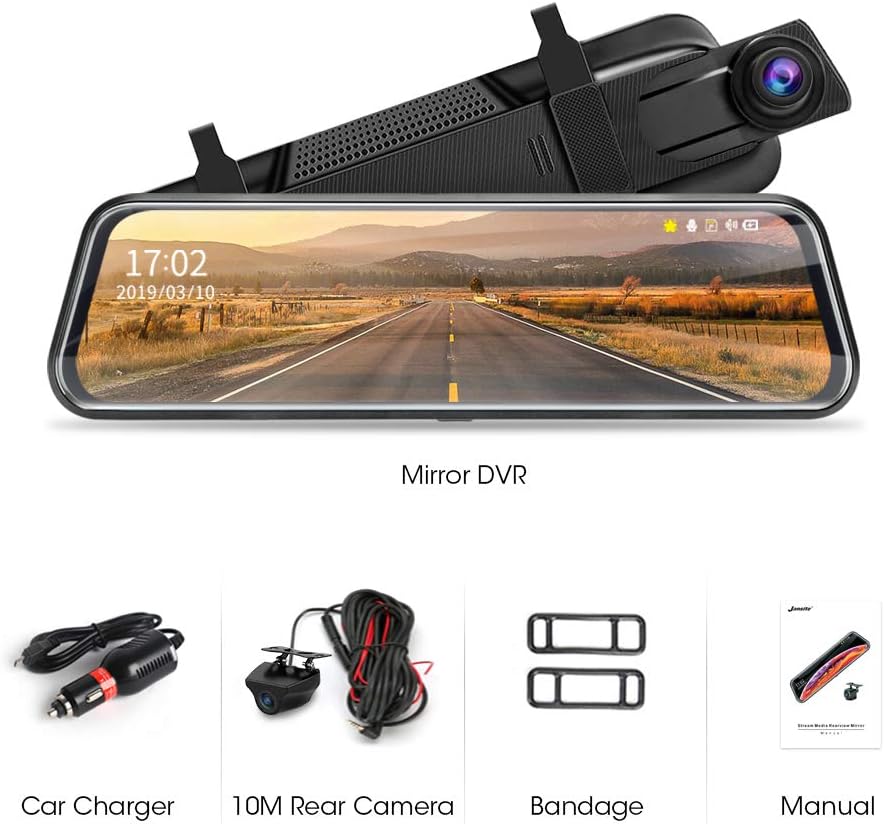 Câmara espelho retrovisor carro ecrã 10" IPS touch FHD 1080p 170º + câmara traseira cabo 10m