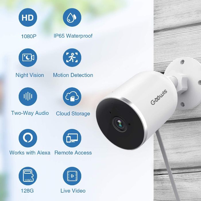 Câmara exterior wifi 1080p IP wifi videovigilância compatível com Alexa
