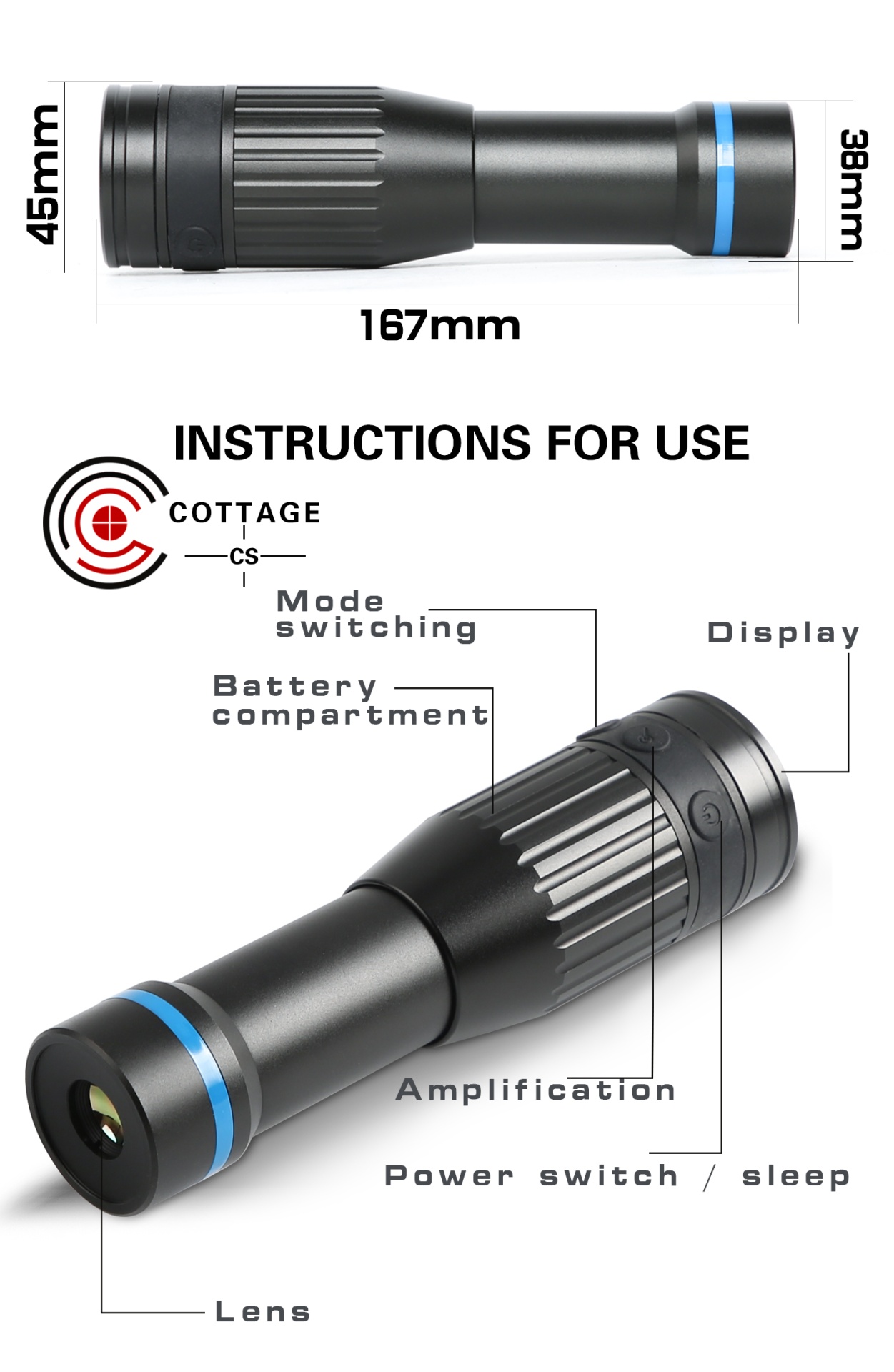 Compacto para utilização cómoda, seja na mão ou na arma. Característica: IPX6 à prova de água. Resolução térmica: 240*180. Tecnologia imageless para evitar eficazmente o congelamento da imagem. Fixação para arma. Bateria CR123AA universal, tempo de trabalho contínuo até 10 horas. Uma variedade de placas debugging da imagem, apropriadas para que os vários ambientes comute a observação da exposição. Zoom digital 5,1X -4X. Dimensão: 45x167mm. Mais informações e características ilustradas nas imagens.