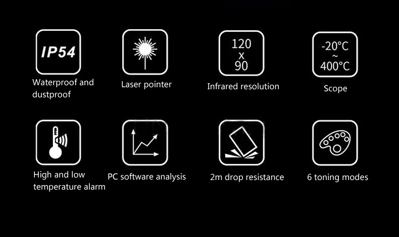 > Faixa de temperatura: A câmara é capaz de medir uma ampla faixa de temperatura entre -20 °C e 400 °C..