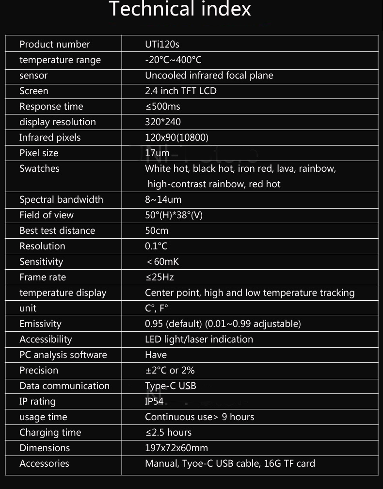 > Possui uma tela LCD colorida integrada para visualização instantânea das imagens térmicas e análise de dados. Taxa de quadros rápida, o que significa que pode exibir imagens térmicas em tempo real sem quase atraso.