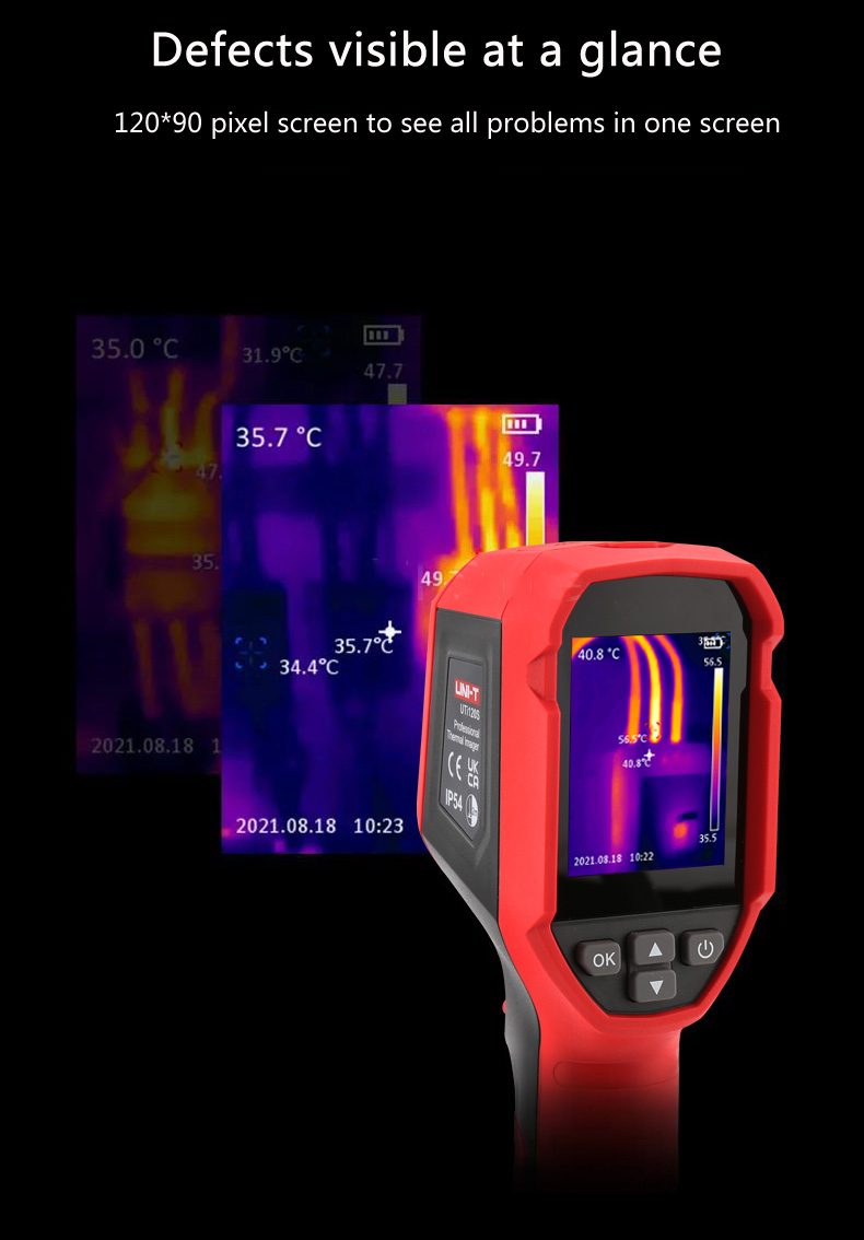 > Resolução de imagem térmica de 120x90 pixels. Permite a captura de detalhes precisos e uma imagem clara das áreas termicamente afetadas.