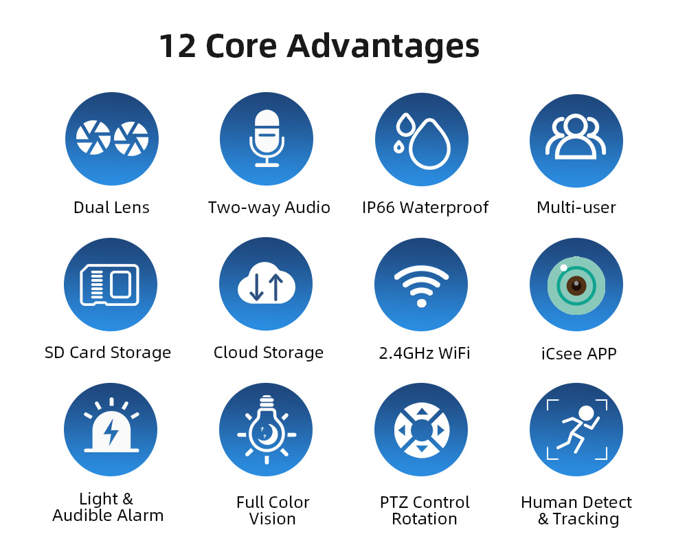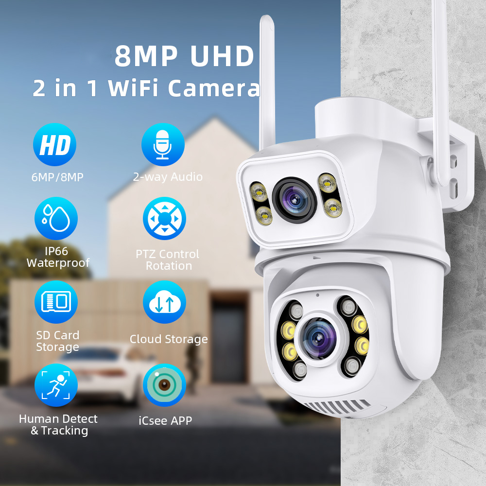 Possui uma lente dupla de 4MP cada com movimento automático PTZ.
