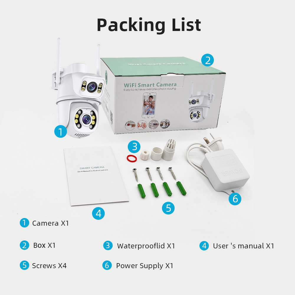 Câmara rotativa dupla lente wifi exterior 1080p 360º noturna