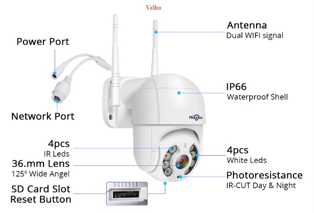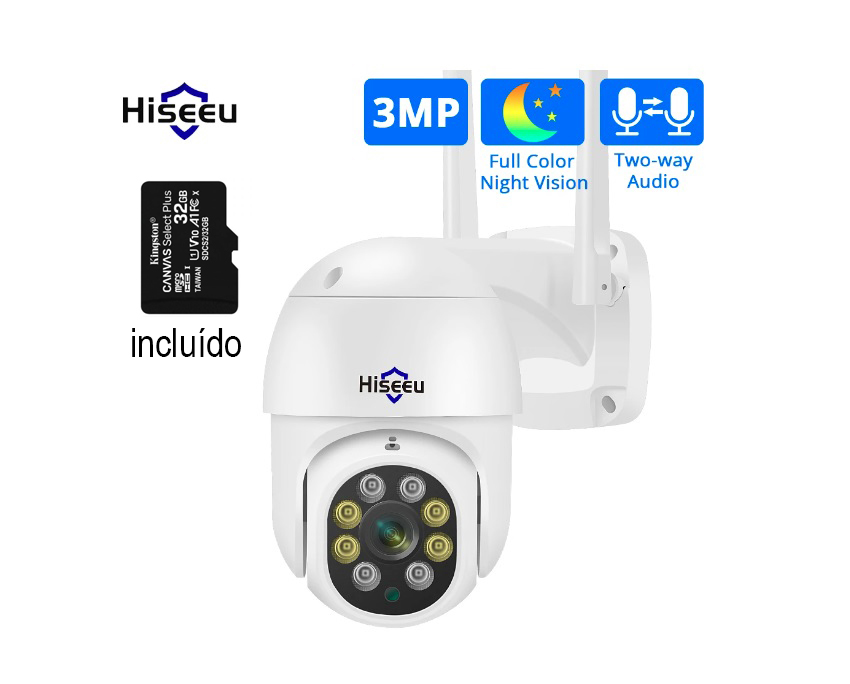 Câmara rotativa exterior 360 wifi Hisseu 3Mpx 1536p