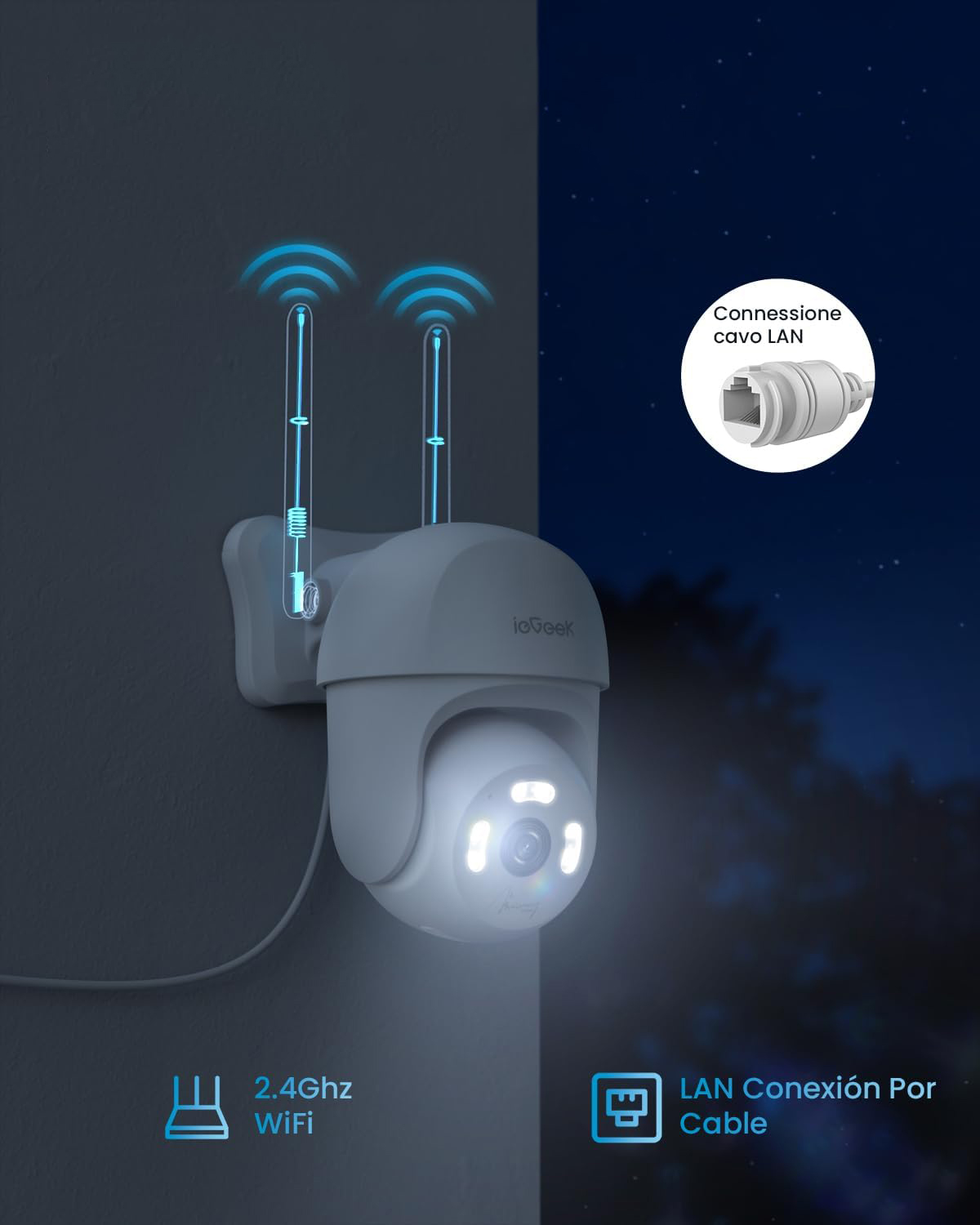 Câmara rotativa wifi 2.5K exterior 360º visão noturna para app