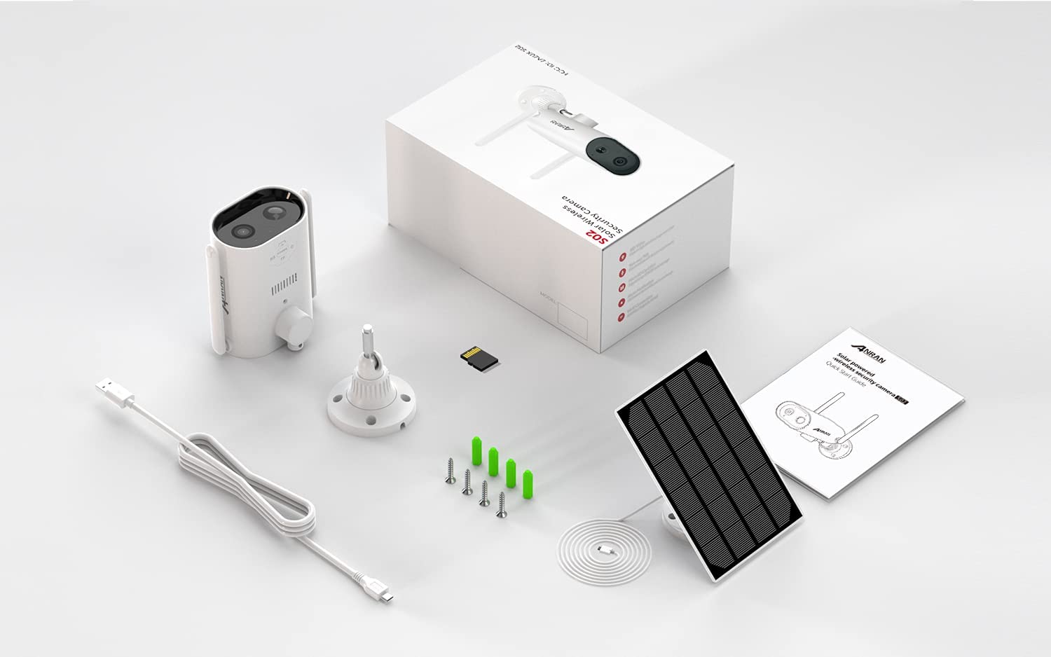 Conteúdo: 1 x câmara de vigilância solar com bateria 1 x Painel solar 1 x cabo de dados USB 1 x kit de parafusos 1 x suporte de metal do painel solar 1 x manual