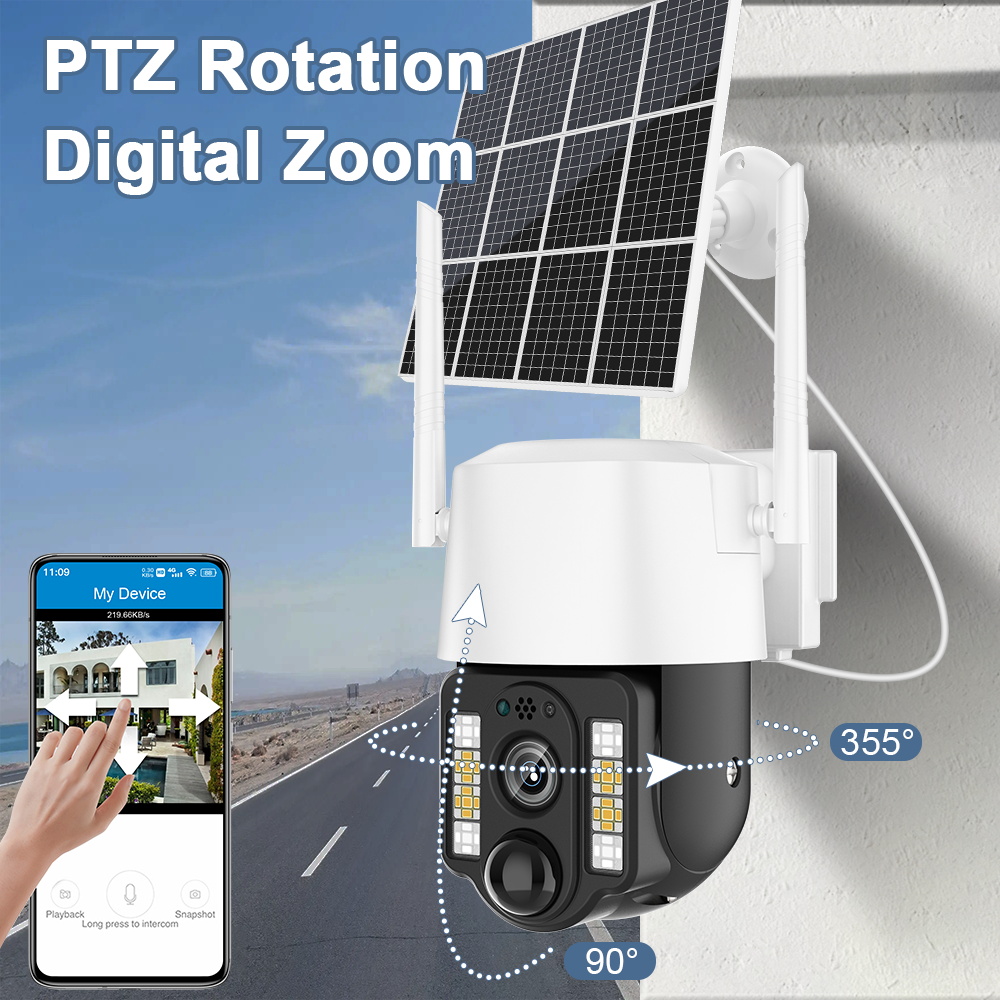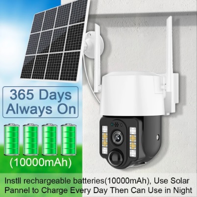- Este modelo de câmara tem ligação à rede em locais sem Internet, através de um cartão SIM inserido na mesma. - Alimentação através de painel solar e com bateria de 10000mAh incorporada, de forma a ser independente de uma alimentação por cabo e mesmo assim ter bastante autonomia na ausência de luz. - Pode ser visto o movimento em tempo real através da aplicação. - Inclui um painel solar 6W alimentado por bateria 12x12cm - Impermeável, própria para exterior. - Resolução 5MPx e visão noturna - Rotatividade horizontal 355º e vertical 90º - Áudio 2 sentidos - Armazenamento em cartão micro SD suportado até 128GB (incluído) - Sensor PIR + deteção de alarme duplo de radar App compatível com Android e IOS