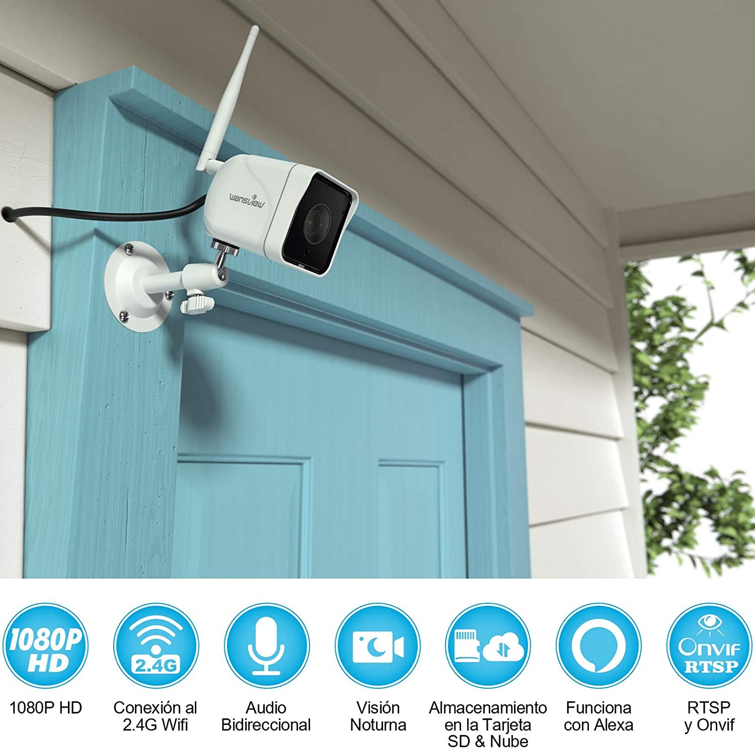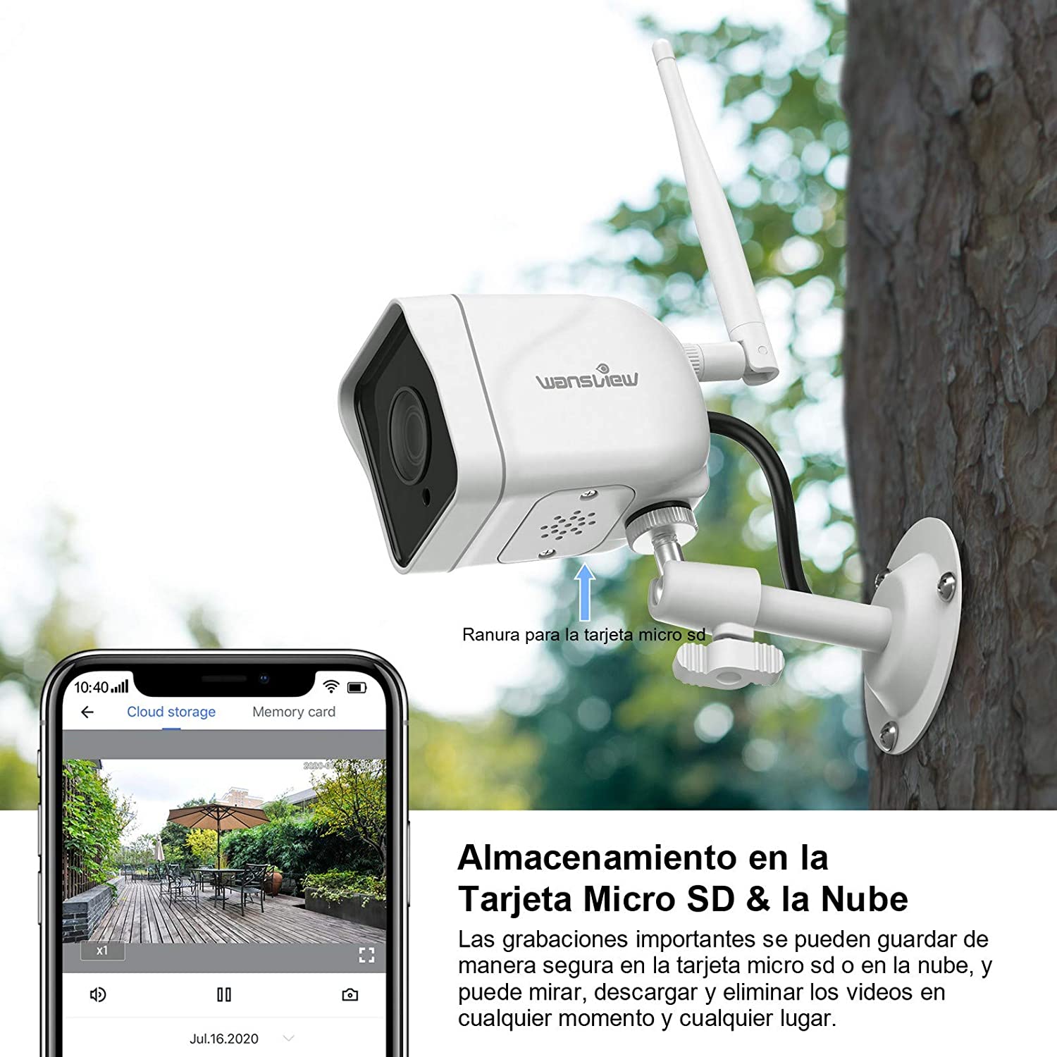 Câmara de exterior bastante compacta em relação a grande parte das câmaras. Menos de 10cm de comprimento. APP: Wansview Cloud, permitindo configurar e ver as imagens remotamente num dispositivo móvel. Áudio bidirecional. permite ouvir o que se passa em redor da câmara e também falar e reproduzir o som na camara. 12 LEDs infravermelhos de 850 nm embutidos e um alcance de até 25 metros de visão noturna. Wi-fi 2.4G, Compatibilidade com o protocolo RTSP / Onvif e com Alexa, pode ser conectado a outro software ou dispositivos de armazenamento de terceiros, como Echo Show, Blue Iris, iSpy, NAS e NVR, etc. Detecção de movimento. Pode gravar apenas na presença de movimento e enviar mensagens em tempo real para o telemóvel como aviso. Método de gravação de dados: Cartão micro SD ou nuvem. Feita em liga de alumínio, IP66, à prova d'água e resistente a choques.