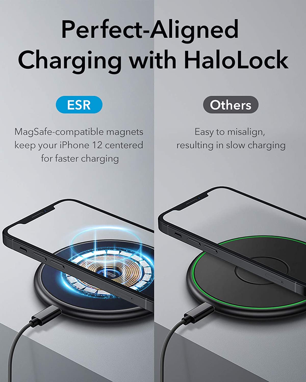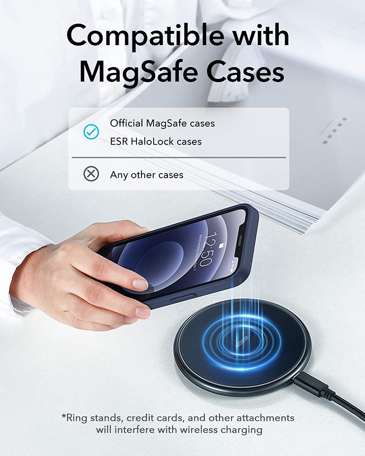O anel magnético manterá o seu iPhone 12 perfeitamente centrado na plataforma de carregamento para um carregamento mais rápido e consistente.