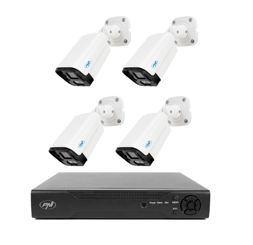 O NVR pode enviar notificações de texto em caso de movimento, enviar e-mail ou salvar a gravação no servidor via FTP. A câmara PNI IP125 utiliza algoritmos para identificar a forma humana e evitar falsos alarmes.