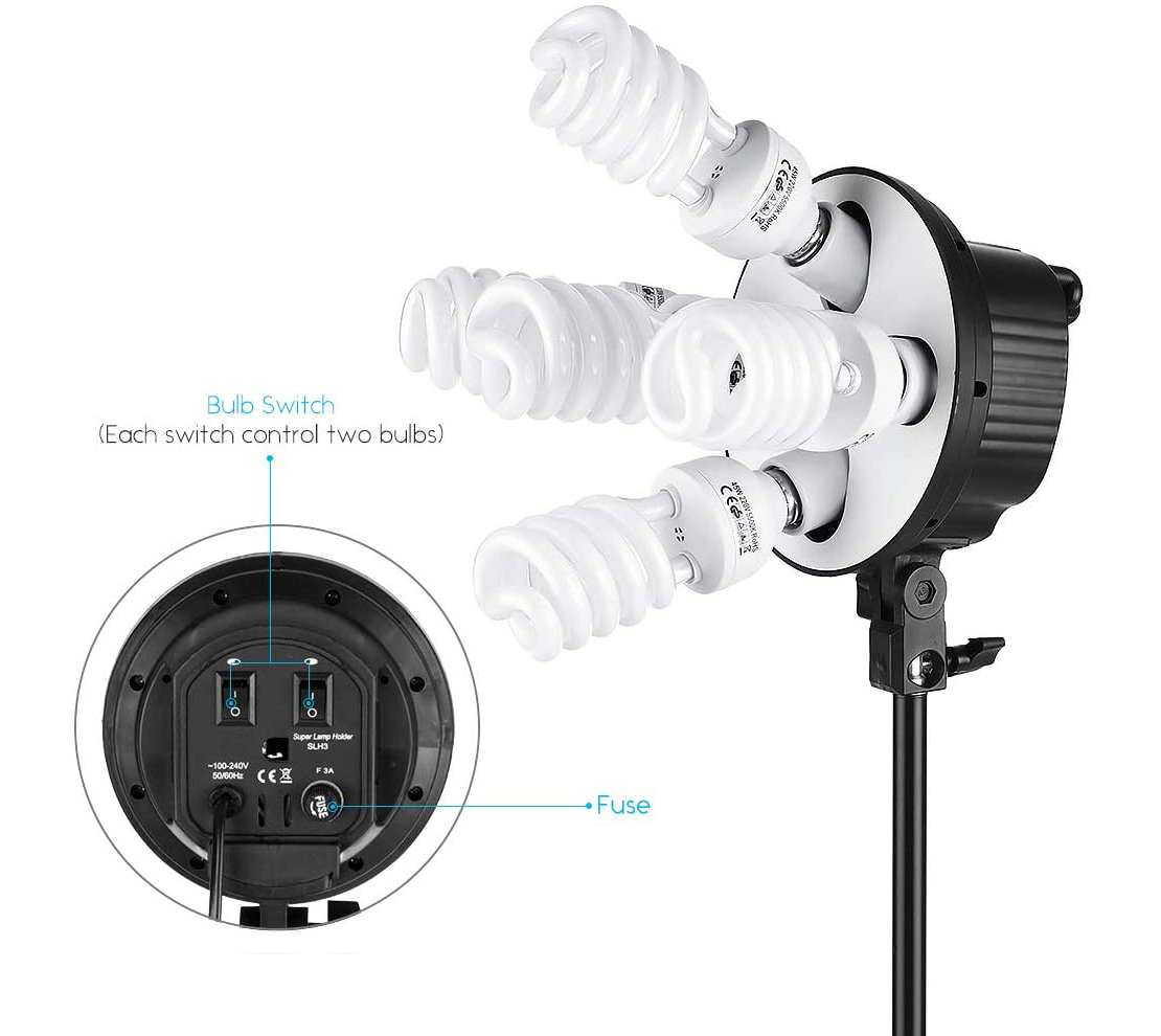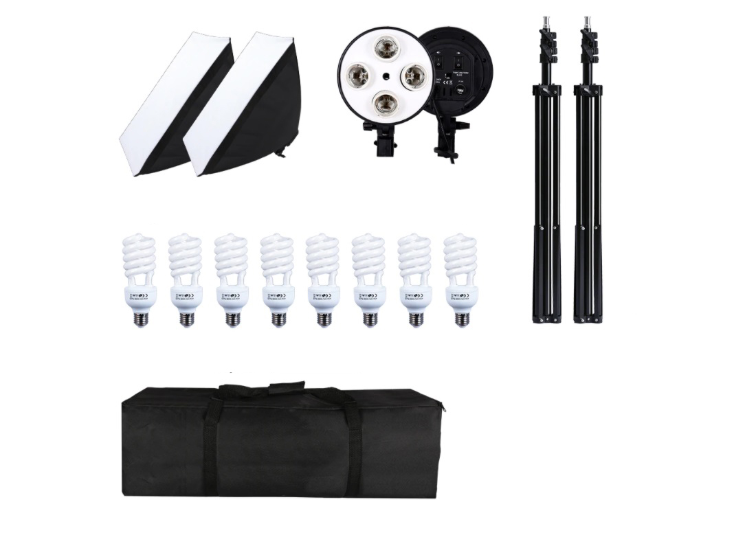 2 softboxes extensíveis em altura com 4 lâmpadas cada