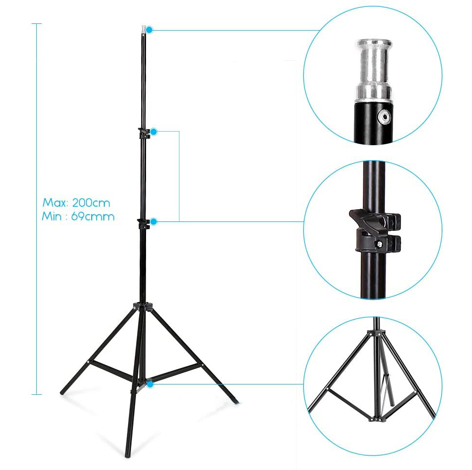 2 tripés em altura ajustável de 65 cm a 190 cm, parafuso 1/4"