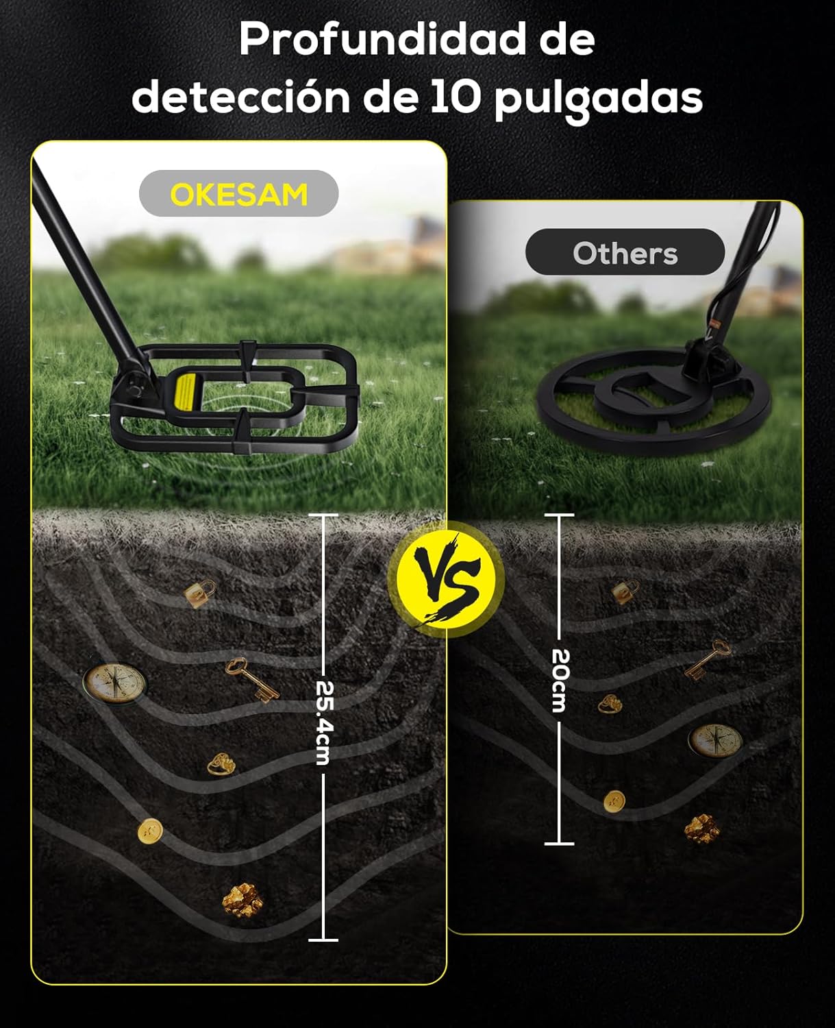 O detetor de metais OKESAM é ideal para quem procura precisão e desempenho na caça ao tesouro, na praia ou em aventuras ao ar livre.