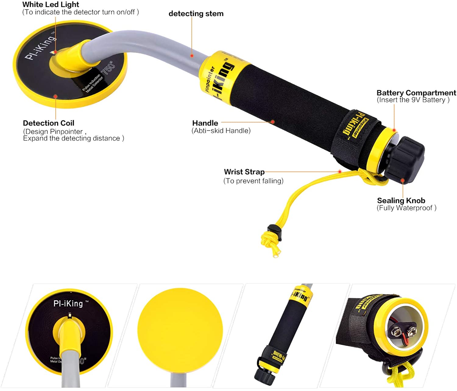 Tecnologia de indução de pulso: a tecnologia PI cria condições que podem ser usadas em qualquer condição de terreno extremo, com maior sensibilidade e estabilidade de deteção. Permite mergulhar até 30 metros debaixo de água. Ajuste automático: processador de controlo de microcircuito avançado com posicionamento preciso e forte anti-interferência. Ao conectar perfeitamente a tecnologia de encaixe sem problemas, pode controlar a ignição e desligar sem qualquer ação de ajuste. Quando identifica um alvo, o sinaliza com pulsos de vibração e piscas dos LEDs. A frequência de pulso de vibração aumenta com a posição exata da ponta da sonda perto do alvo.