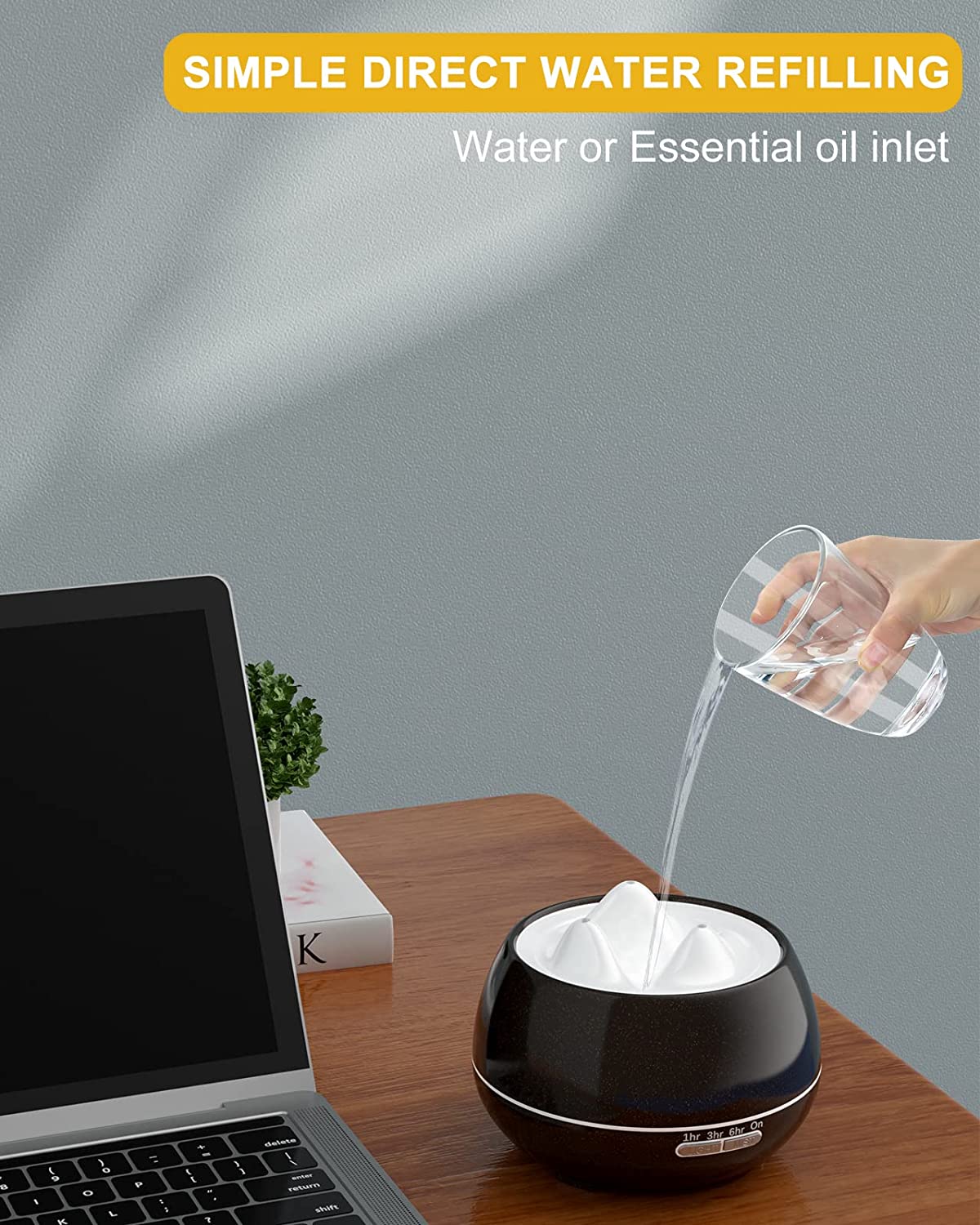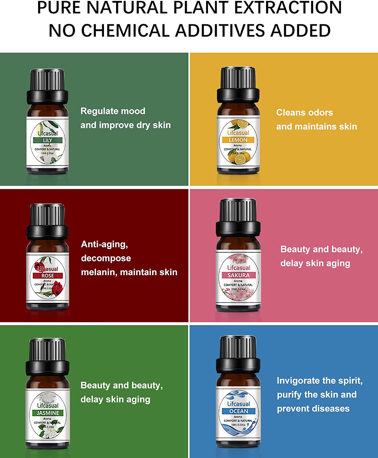 Difusor de óleos essenciais de 500 ml e 8 óleos essenciais de 10 ml com design elegante. Permite adicionar água ou essências diretamente por cima. Quando não há água no dispositivo do difusor de aromas, derrame acidentalmente ou sobreaquece, corta automaticamente a energia. Feito com materiais sem BPA, é 100% não tóxico e seguro para bebés. Difusor de óleos essenciais de 500 ml e 6 óleos essenciais de 10 ml. Extremamente silencioso que não interrompe o trabalho ou sono Apto para salas até 50m². 7 luzes LED que mudam – a luz de 7 cores pode ser ajustada para cores e leveza, Torna-o útil como difusor de aroma, humidificador, purificador de ar, luz noturna. Perfeito para quarto, escritório, sala de estar, casa de banho, ioga, spa, sala de conferências, quarto de bebé, etc.