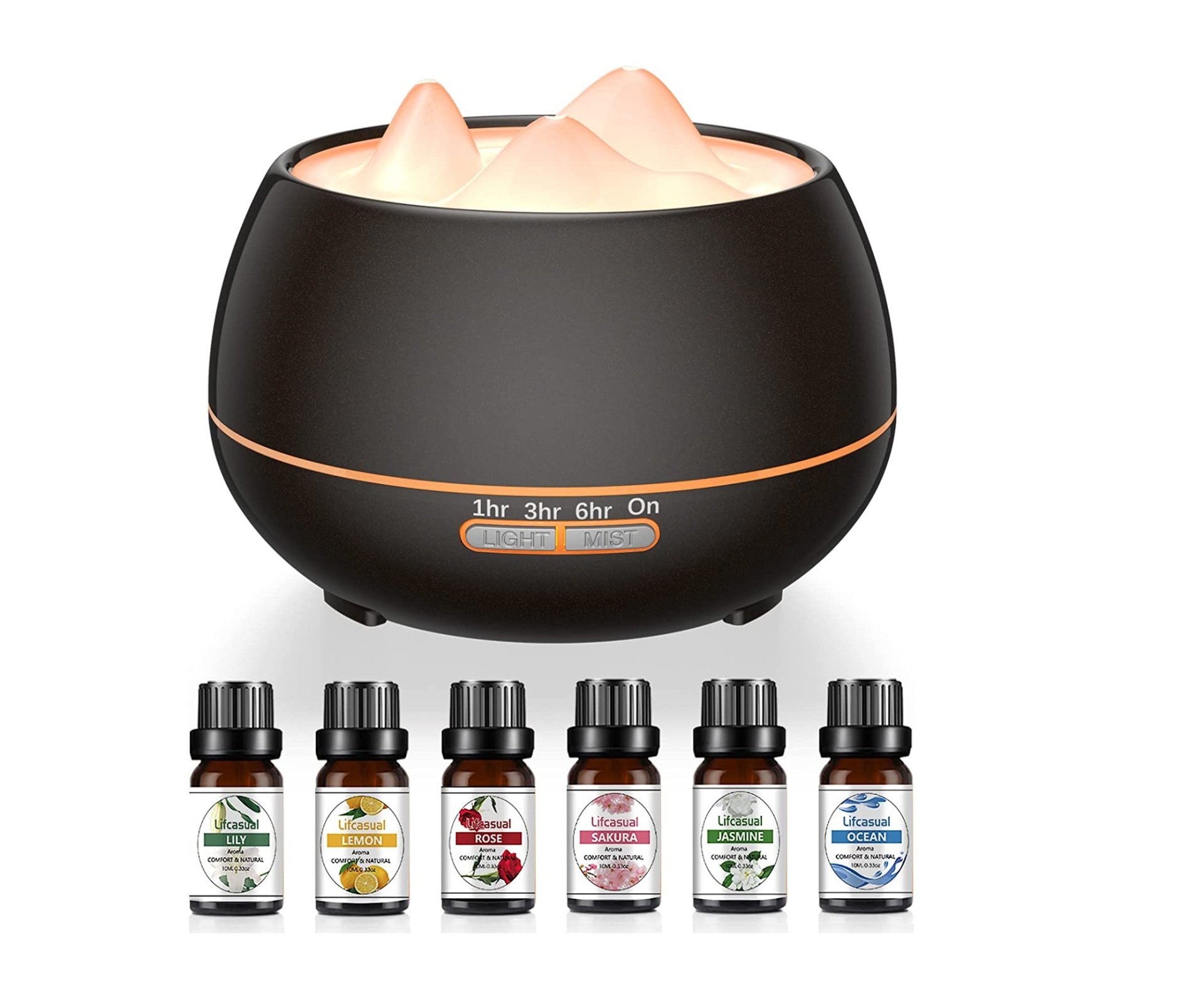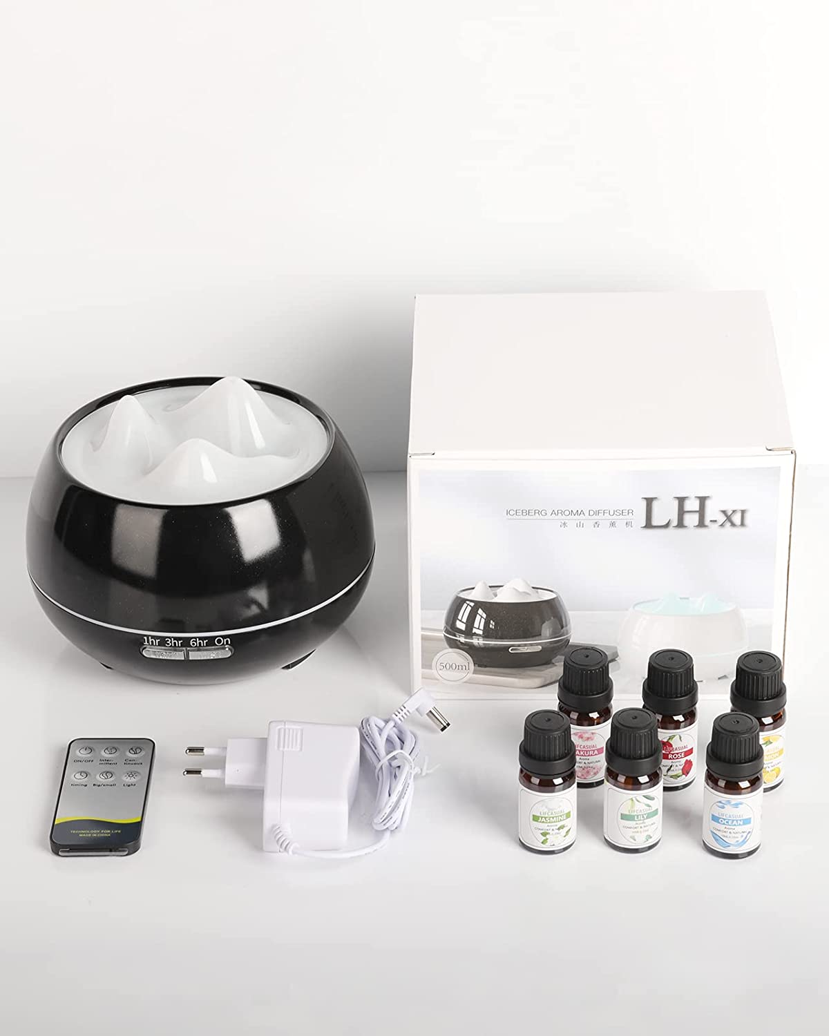 Difusor de óleos essenciais, 500 ml, com 6 óleos e comando incluídos