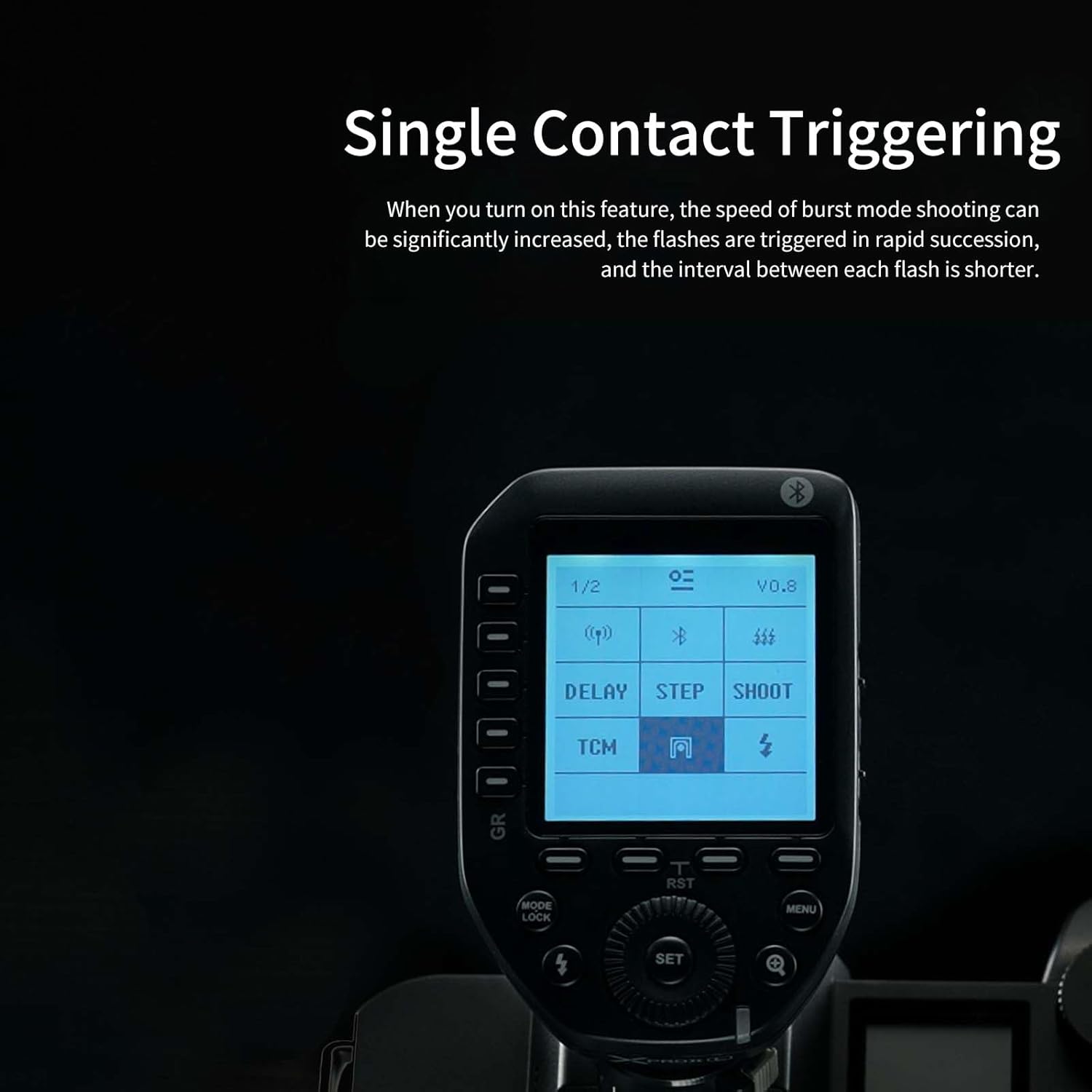 Ecrã LCD extra grande: 16 grupos e 32 canais para controlar e ativar sem fios. Os canais e IDs separados podem efetivamente impedir a interferência do sinal. Visualização em tempo real de configurações de flash remotas num ecrã LCD extra grande para obter resultados profissionais.