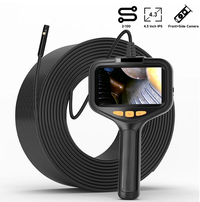 - Facil operação - Resolução 1080P. - Sinal analógico para imagem suave, mesmo com 30 metros cabo. - Comprimento do tubo da câmara é de 33mm e a largura 5,5mm, o que é melhor para passar o canto do tubo. - Design ergonómico de mão para operação confortável. - Câmara impermeável IP68 para inspeção em tubos com água - Bateria 2600mAh bateria para 4-5 horas de trabalho. - Luzes LED ajustáveis. - Monitor 2.4" ou 4,3" - Cabo rígido pode facilmente moldar o que você precisa, o que é melhor para superar obstáculos. - Distância focal: 5-10cm para câmera frontal, 2-6CM para câmara lateral.
