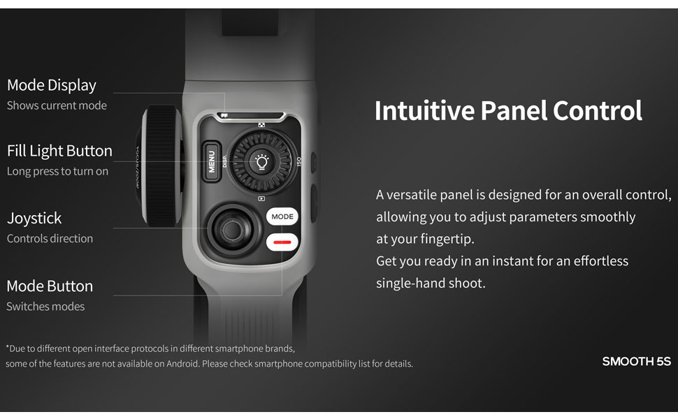 Estabilizador Zhiyun Smooth 5 Gimbal para iPhone ou Android