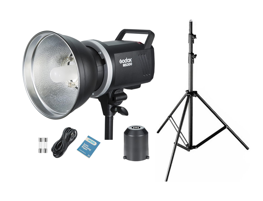 Flash Strobe 300W Godox MS300 + lâmpada de modelagem 150W