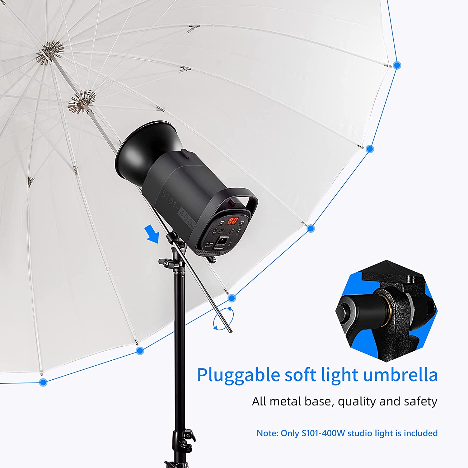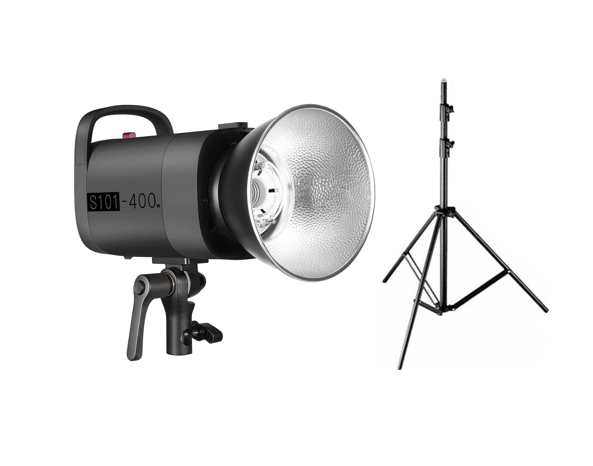 Luz strobe bastante potente. Temperatura de cor 5600 K e um número guia de 65, esta luz estroboscópica de estúdio de 400 W proporciona uma iluminação flash potente e confiável para fotografias estúdio ou até mesmo no exterior. A estrutura de liga de alumínio é resistente o suficiente para suportar o desgaste diário durante muitos anos. Reciclagem rápida do flash: o modo manual permite ter um controlo total da potência do flash ajustando o intervalo de potência de 7,0 a 10 (1 / 8 - 1 / 1). Tempo de reciclagem muito rápido (0,4-2,8 s) (1/800-1/2000s) Modo ótico S1/S2, o que pode disparar por simpatia com outro flash. Níveis de brilho ajustáveis de 10% a 100% com ampliações de 10% para ajudá-lo a visualizar a imagem. Um ecrã LCD de fácil leitura mostra as configurações de luz atuais num relance Com suporte tipo S da Bowens, que funciona com várias ferramentas de iluminação com softboxes, entre outros.