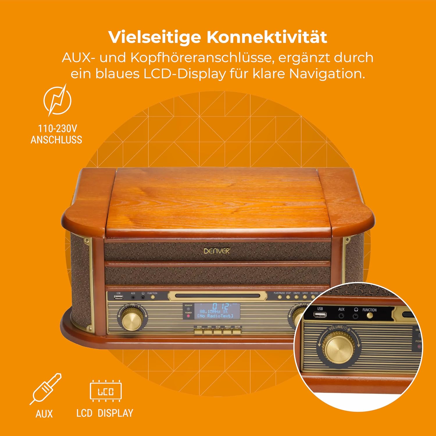 Design elegante: o design com uma carcaça de madeira maciça confere um caráter elegante e compacto, ao mesmo tempo que mantém um visual retrô e tradicional
