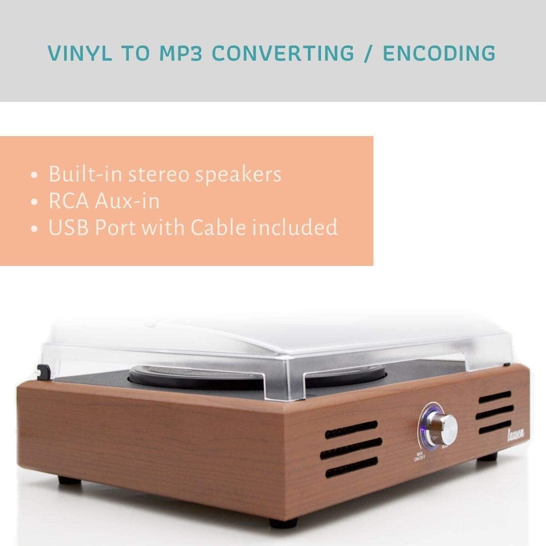 Gira discos madeira portátil 3 velocidades madeira