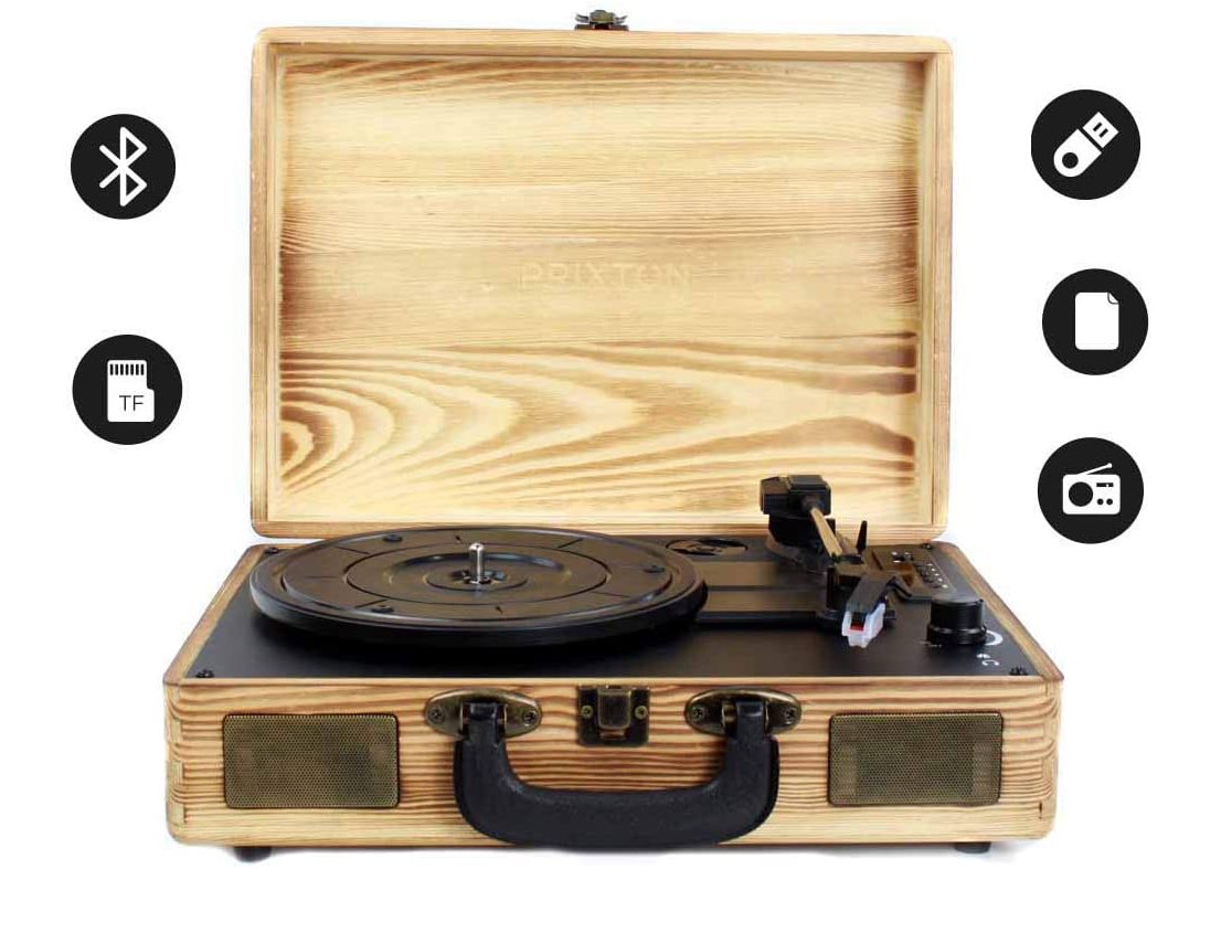 Cópia de Gira discos portátil mala em madeira ou pele Bluetooth e USB