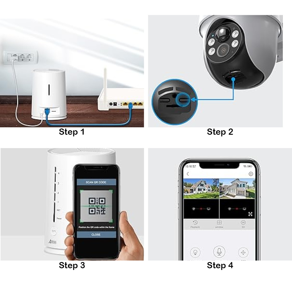 O NVR fica ligado ao router para poder aceder à app e às imagens remotamente em qualquer lugar.