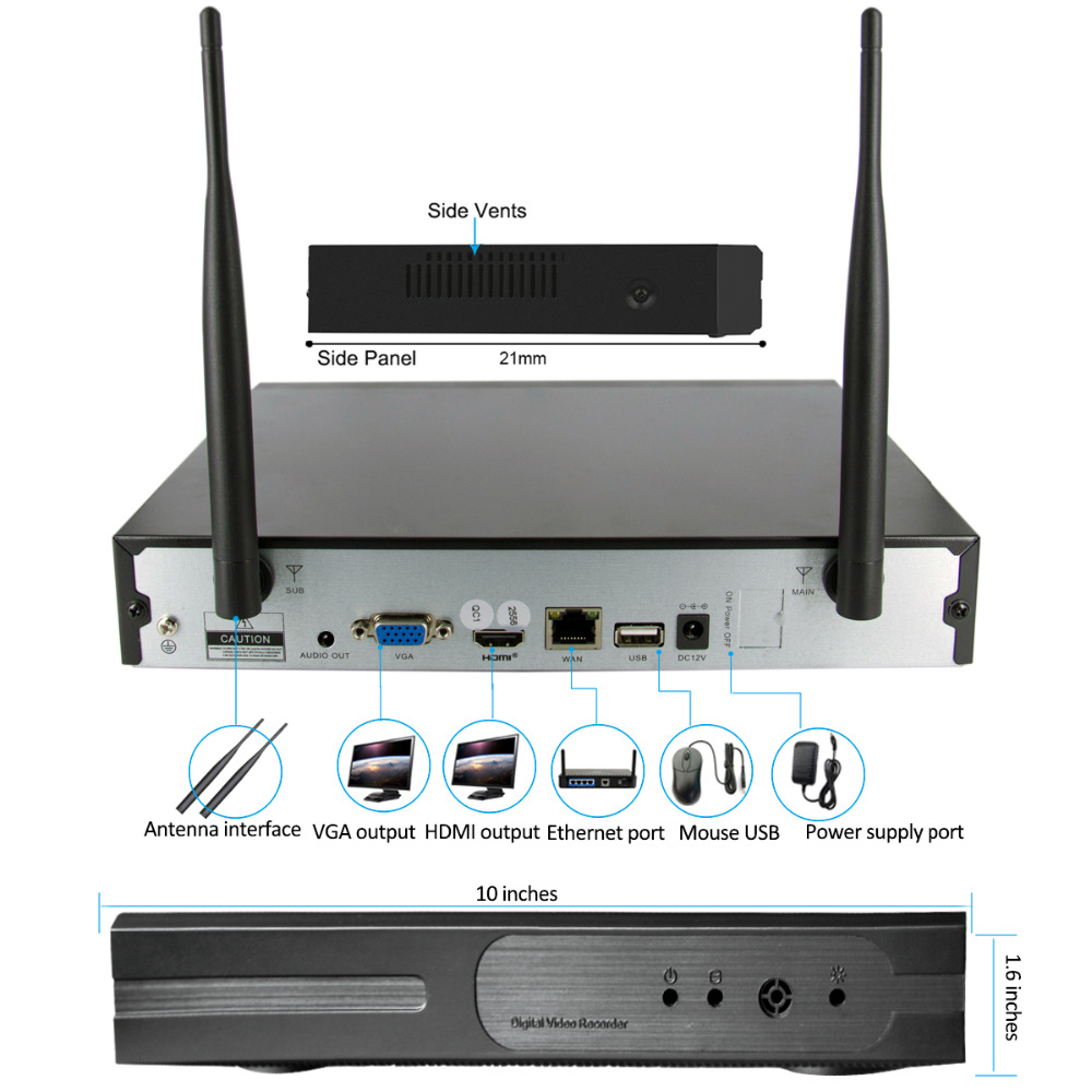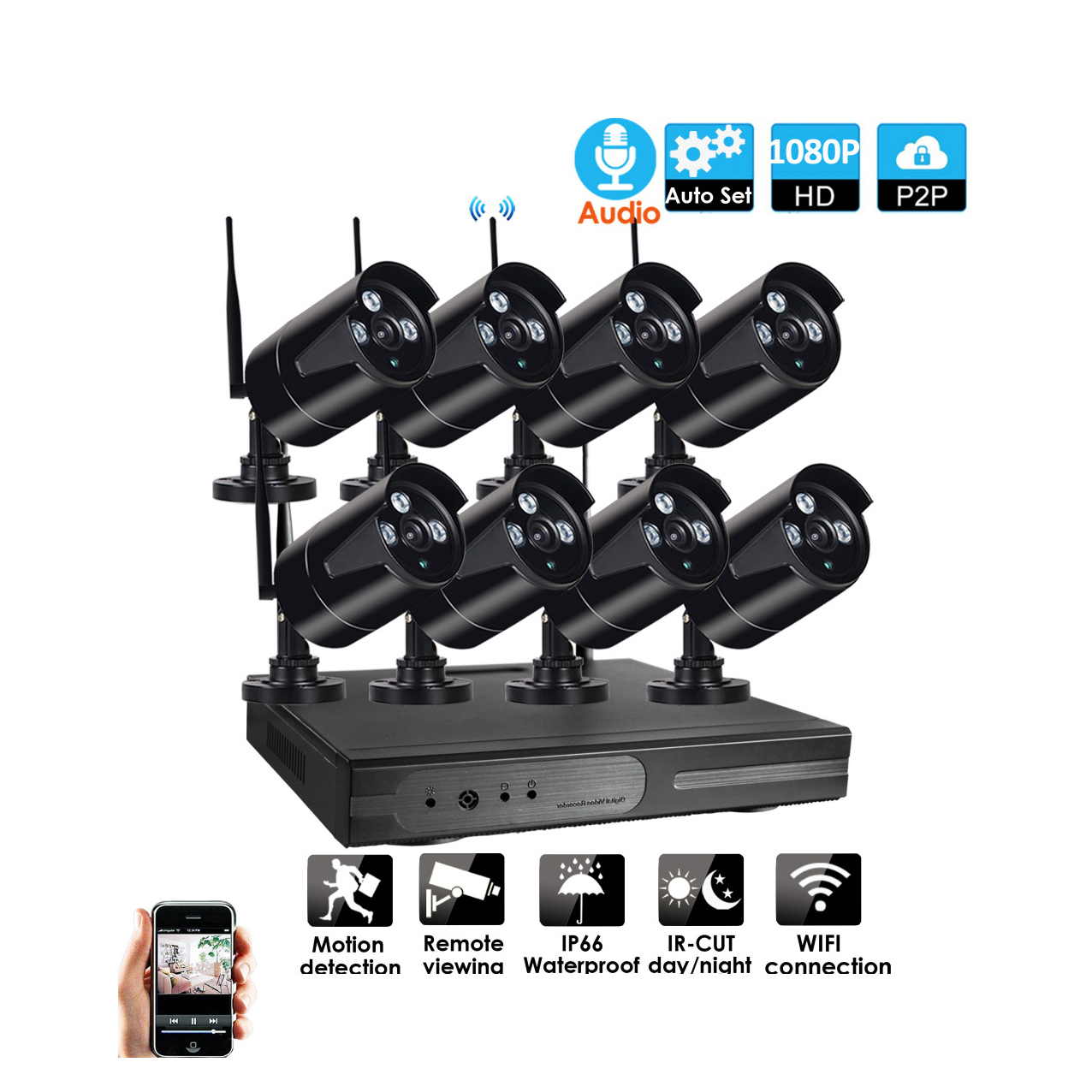 Kit CCTV câmaras pretas WiFi videovigilância 8CH 4/8 câmaras 1080p