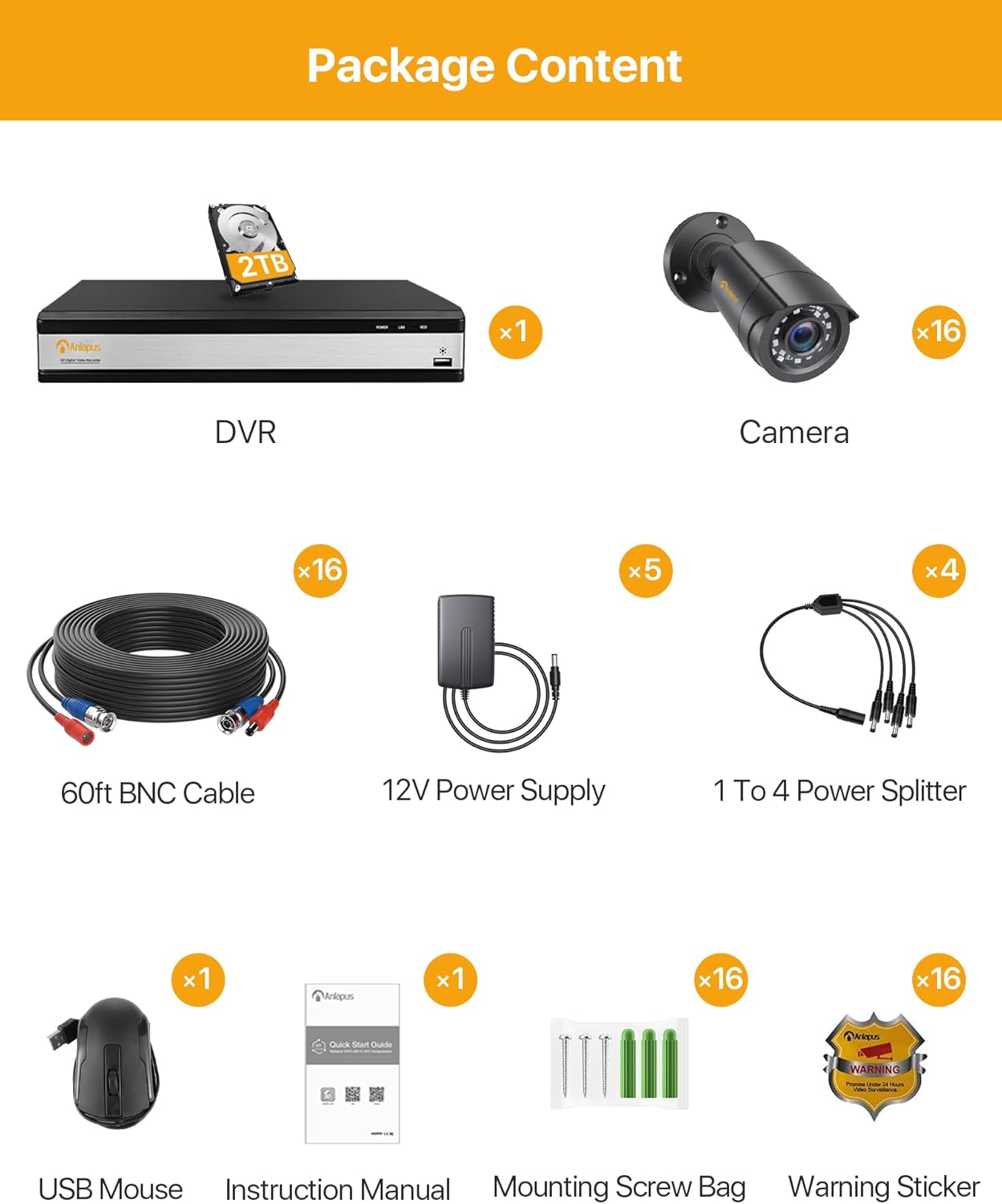 1 DVR 16CH 1080P com 2TB HDD,