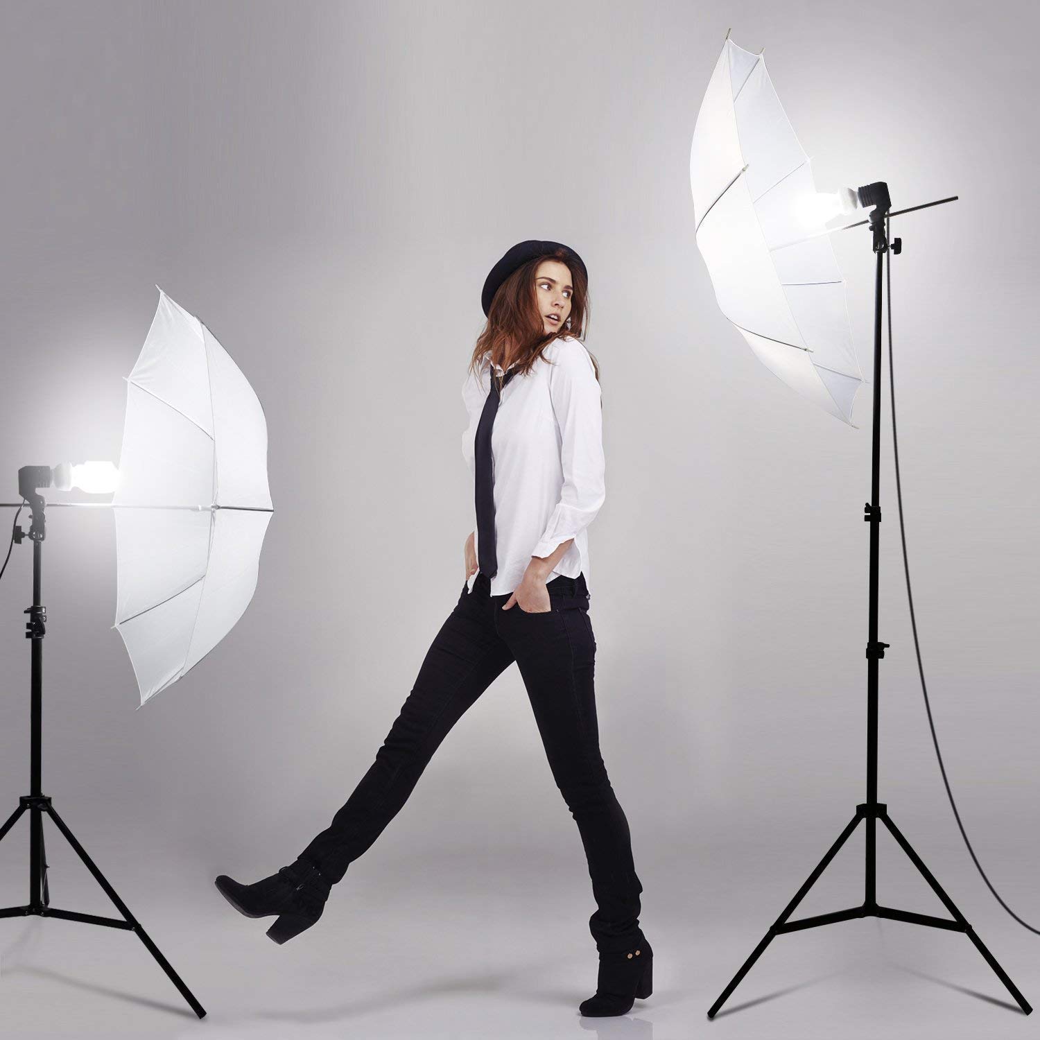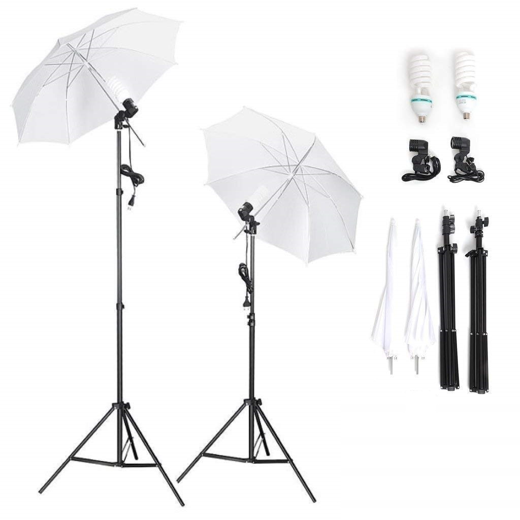 Kit de iluminação de estúdio 2 guardachuvas e lâmpadas - sombrinhas
