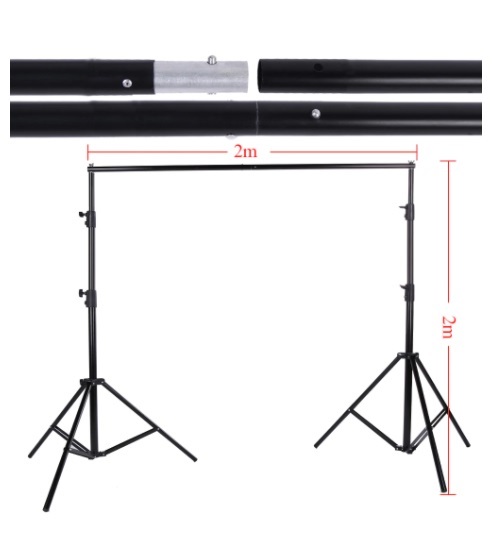 Conteúdo: 2 x lâmpadas 2 x Suportes de lâmpada 2 x guarda chuva 3 x panos de fundo 1 x estrutura de suporte de pano de fundo 3 x braçadeiras 1 x Bolsa de transporte
