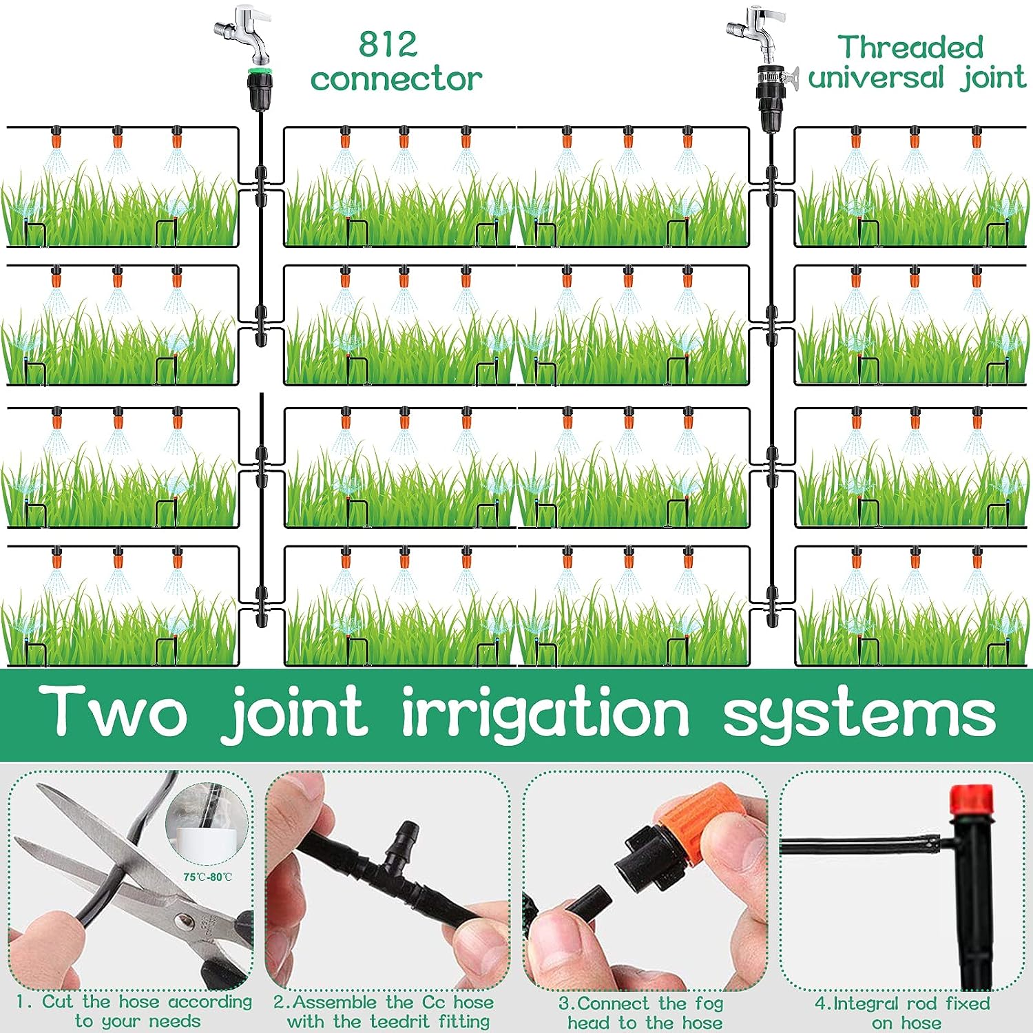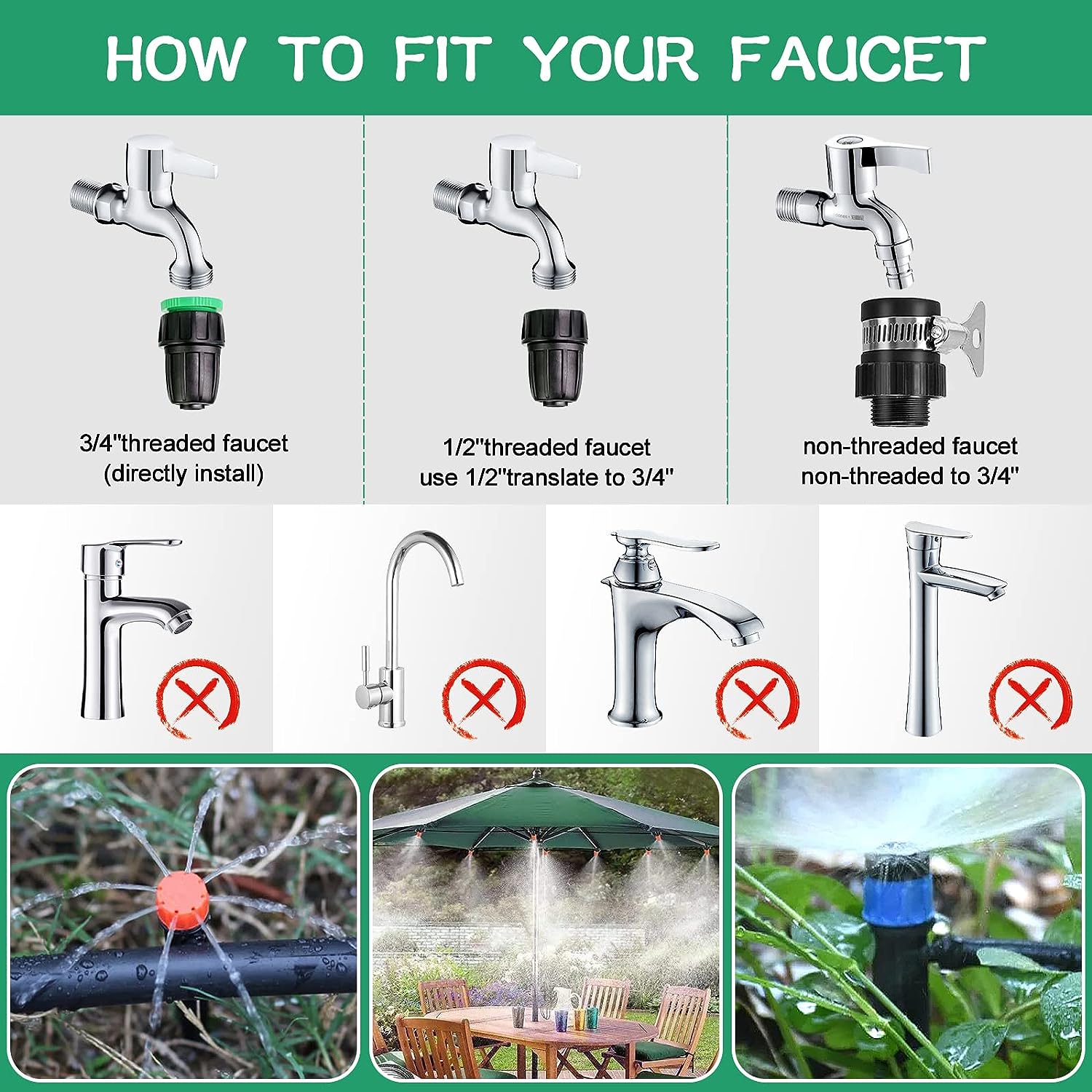 Kit de sistema de rega gota a gota de 40 m. Mangueiras de 40 e de 8 metros de mangueira, 20 bicos de nebulização, 20 bicos de pulverização, acessórios para mangueira, conectores de torneira e outras ferramentas essenciais. Um conjunto completo para ajudar a regar 50 plantas de forma automática e simultânea. São feitos com materiais de alta qualidade que são duráveis, resistentes aos raios UV e ao clima. Bocais ajustáveis: Cada um dos bocais pode ser facilmente ajustado ao girar a cabeça, para que possa escolher ligar, desligar ou ajustar o fluxo de água para se adaptar a diferentes plantas. Um kit de irrigação ideal para todos os jardineiros. Pode economizar até 70% de água e tempo. Economiza muito esforço ao arrastar mangueiras entre plantas e jardins. Fácil, eficiente e económico! Fácil instalação: a instalação é muito simples e pode ser feita em 30 minutos. Tudo está acima do chão sem precisar de escavar ou fazer canalização. O kit de rega inclui instruções detalhadas. Dica: Aqueça a extremidade da mangueira em água quente um minuto antes da instalação.